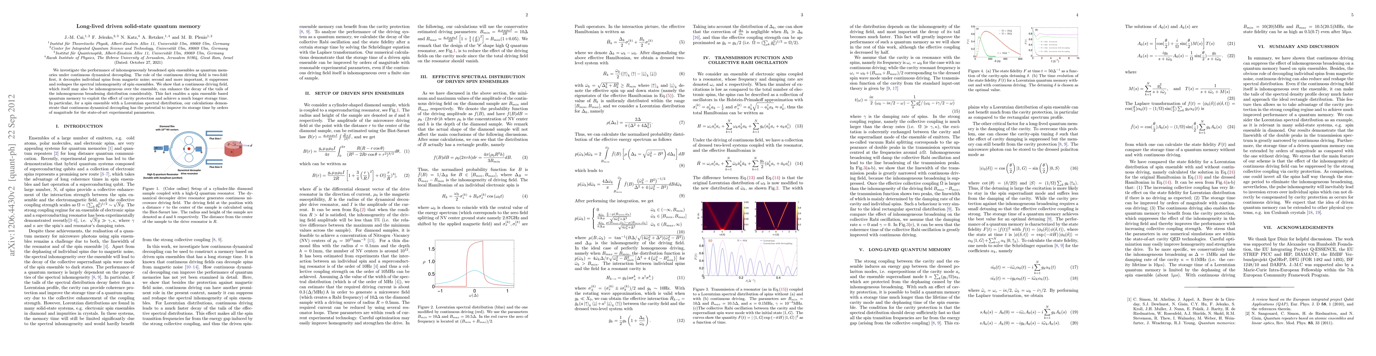 Continuous dynamical decoupling enhances spin ensemble quantum memory by suppressing spectral inhomogeneity, enabling significantly longer storage times.