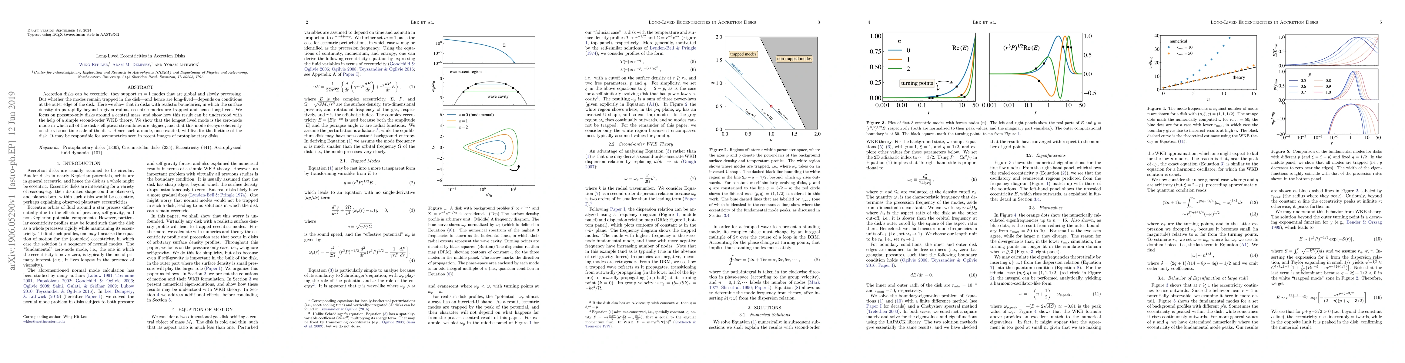 This paper demonstrates that eccentric modes in accretion disks, specifically $m=1$ modes, can be trapped and remain long-lived if the disk's surface density drops rapidly beyond a certain radius. Using a second-order WKB theory, the study finds that the zero-node mode, where all elliptical streamlines are aligned, decays coherently on the viscous timescale, potentially explaining asymmetries in protoplanetary disks.