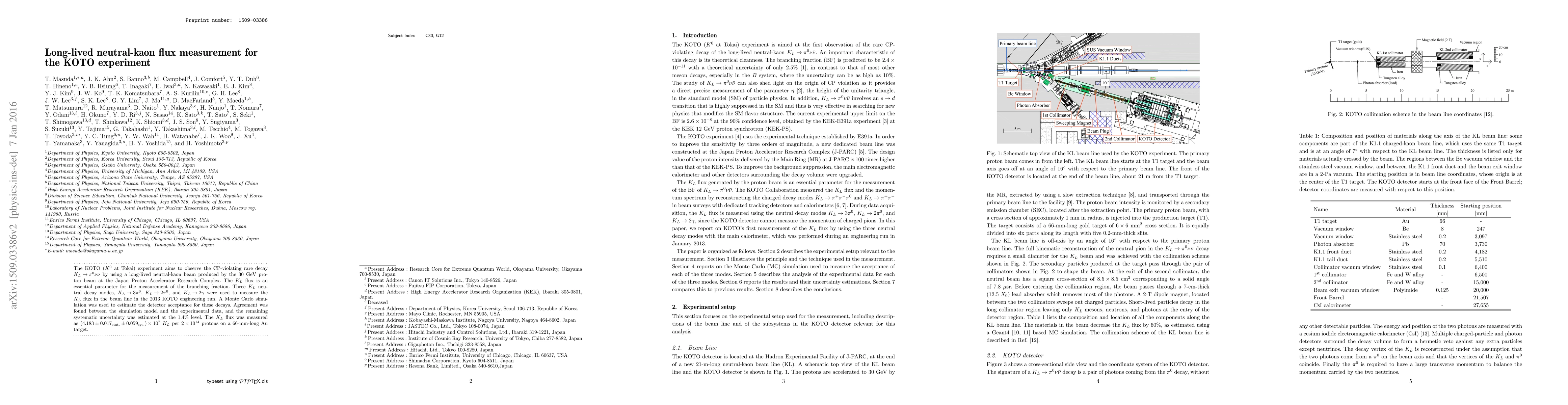 The KOTO experiment measured a long-lived neutral-kaon flux with an accuracy of 1.4% using three decay modes and a Monte Carlo simulation, paving the way for studying the CP-violating rare $K_L ightarrow uar{ u}$ decay.