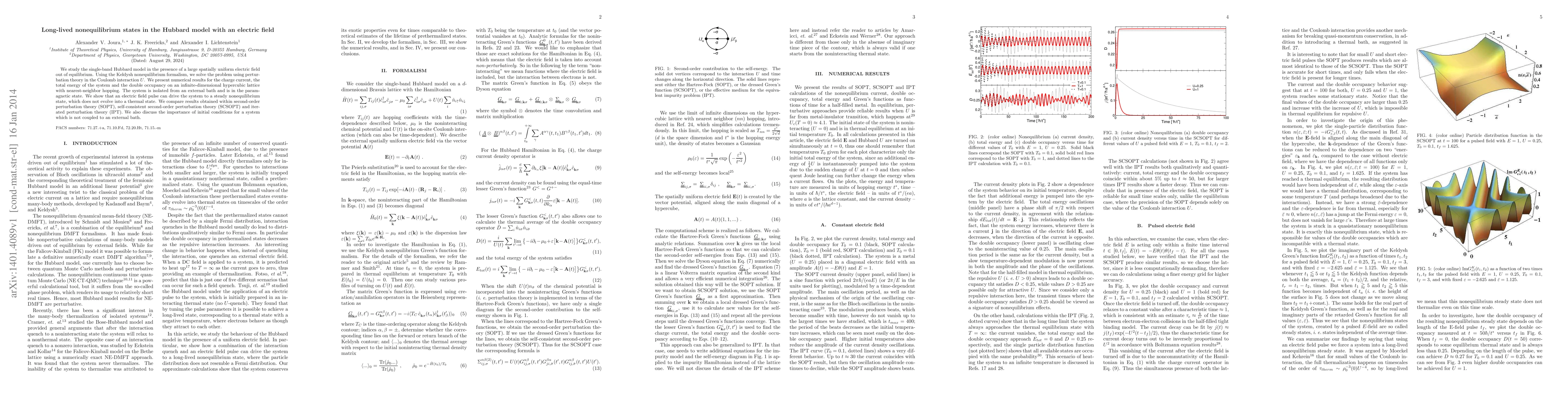 Researchers study how an electric field affects a system of particles in a material, finding that it can create a steady nonequilibrium state that doesn't evolve into heat. The study uses advanced mathematical techniques to understand the system's behavior under these conditions.