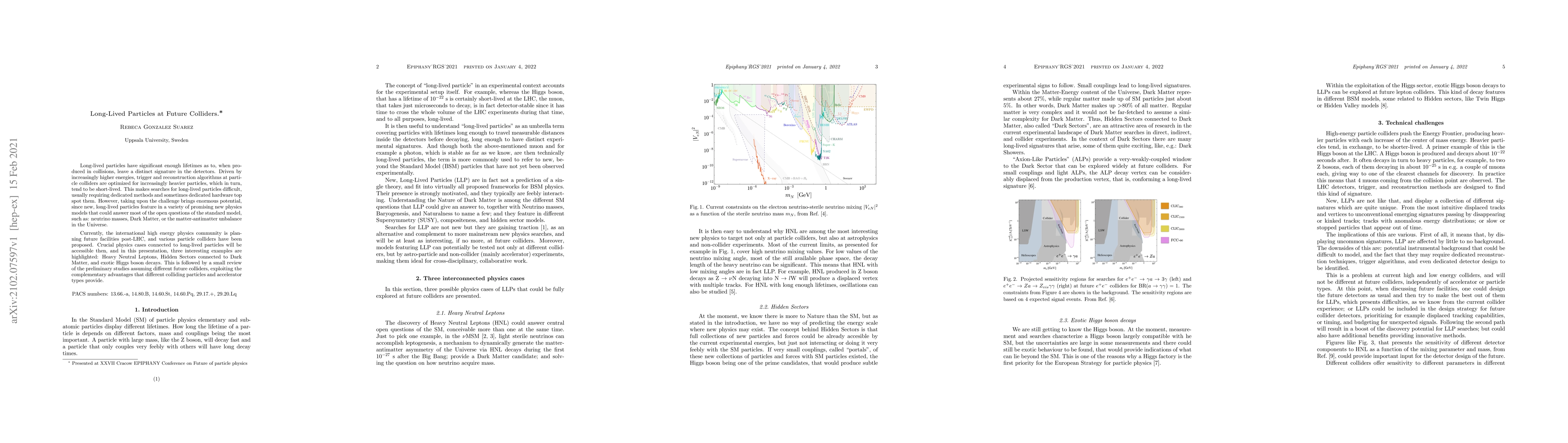 This paper discusses the challenges and potential of detecting long-lived particles at future colliders, emphasizing their significance in addressing open questions in the standard model, such as neutrino masses and Dark Matter. It highlights three key physics cases, reviews preliminary studies, and explores the complementary advantages of different collider types.