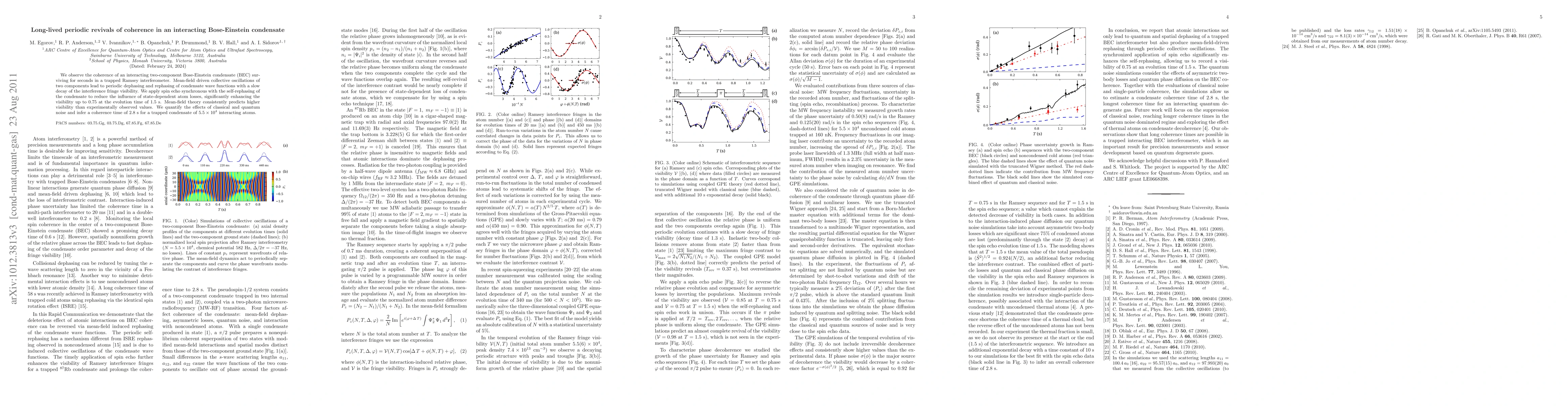 This study investigates long-lived coherence in an interacting two-component Bose-Einstein condensate, observing mean-field driven oscillations and applying spin echo techniques to enhance interference fringe visibility up to 0.75 over 1.5 seconds. Theoretical predictions exceed experimental results, and the coherence time is estimated at 2.8 seconds for a condensate of 5.5e4 atoms.