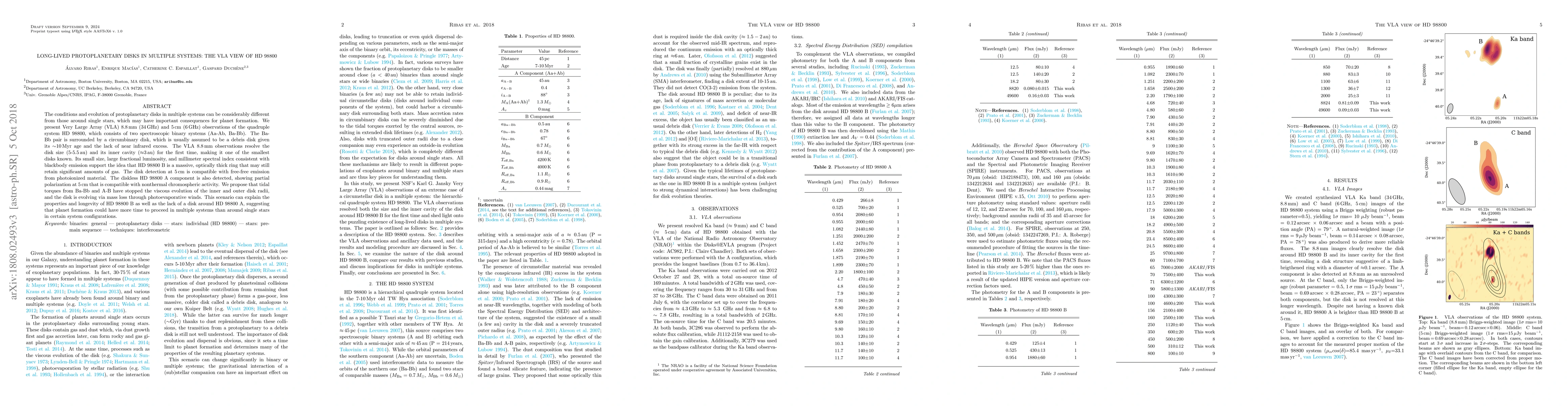 The VLA observations of the quadruple system HD 98800 reveal a circumbinary disk around the Ba-Bb pair, characterized by a small size and inner cavity, suggesting it may retain significant gas despite its age. The disk's longevity is attributed to tidal torques and photoevaporative winds, implying extended time for planet formation in multiple systems.