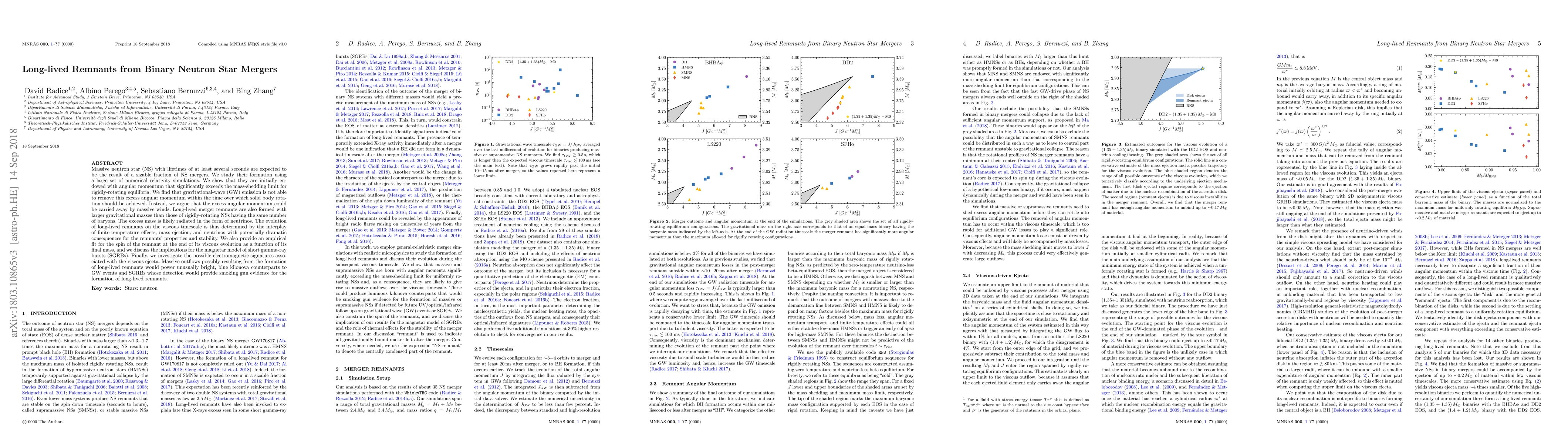 This study, using extensive numerical relativity simulations, reveals that massive neutron star merger remnants can exceed mass-shedding limits due to excess angular momentum. This excess is potentially carried away by massive winds and radiated as neutrinos, significantly influencing the remnant's properties and stability. The research provides a fit for remnant spin based on final mass and discusses implications for magnetar models of short gamma-ray bursts, suggesting bright, blue kilonova counterparts as possible evidence for these long-lived remnants.