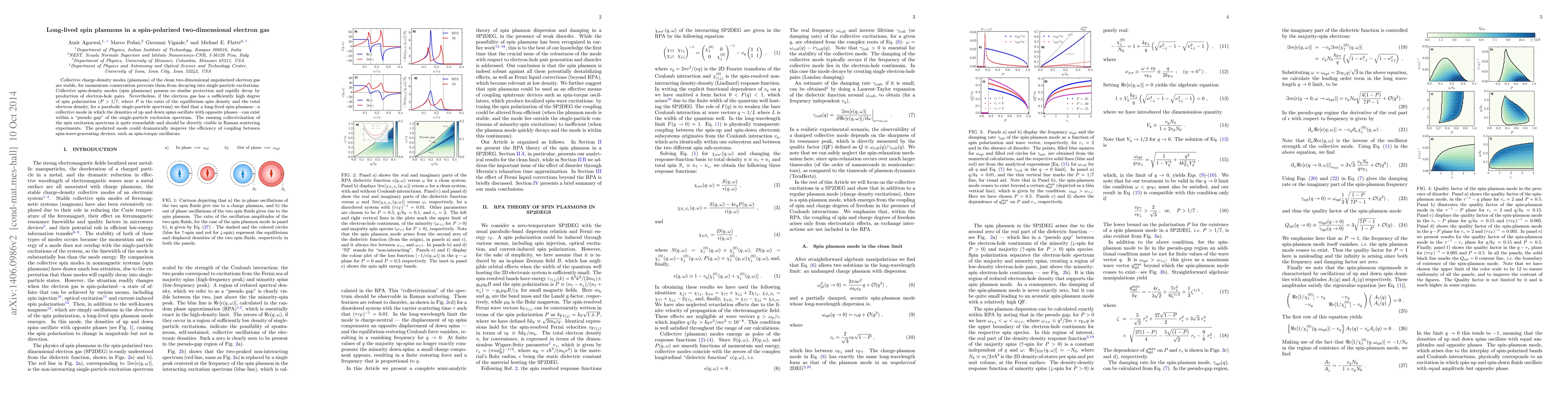 This research reveals that long-lived spin plasmons can exist in a highly spin-polarized two-dimensional electron gas, where the densities of up and down spins oscillate with opposite phases, protected by a "pseudo gap" in the single-particle excitation spectrum. This phenomenon should be detectable in Raman scattering and could enhance the efficiency of spin-wave devices.