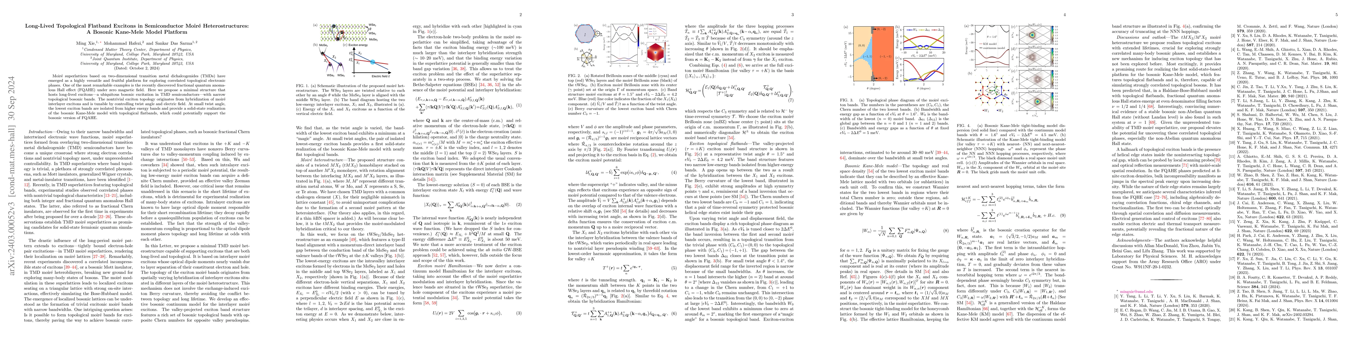 The paper explores Moir\'e superlattices in TMDs, revealing long-lived topological excitons with bosonic Kane-Mele model properties, potentially supporting a bosonic fractional quantum anomalous Hall effect. The exciton topology is tunable via twist angle and electric field.