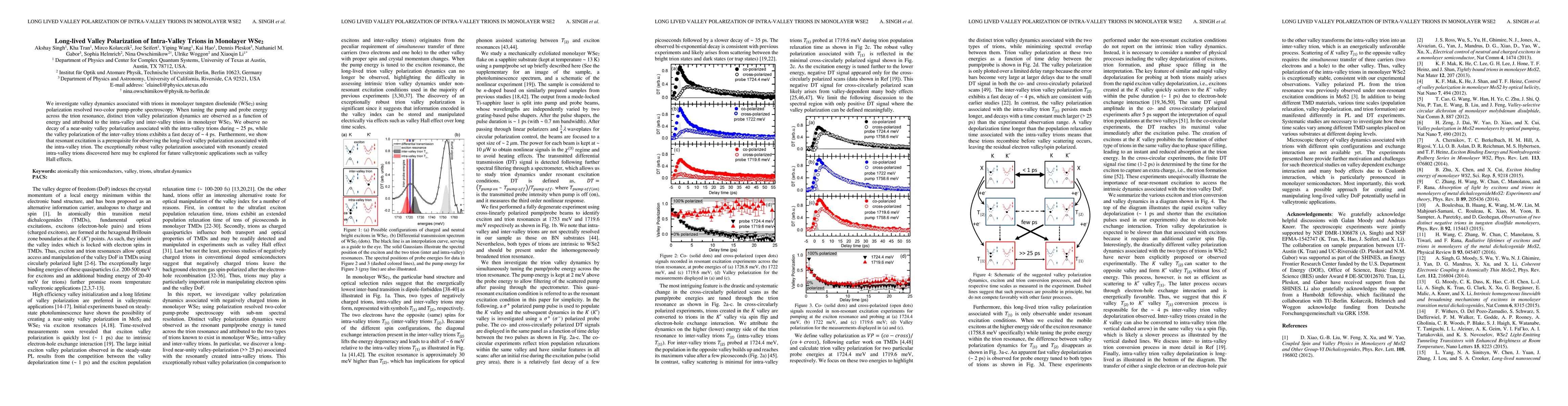 This study reveals long-lived valley polarization in intra-valley trions in monolayer WSe2, observed via polarization resolved spectroscopy, contrasting with the rapid decay of inter-valley trions. The robust polarization, maintained for ~25 ps, suggests potential for valleytronic applications.