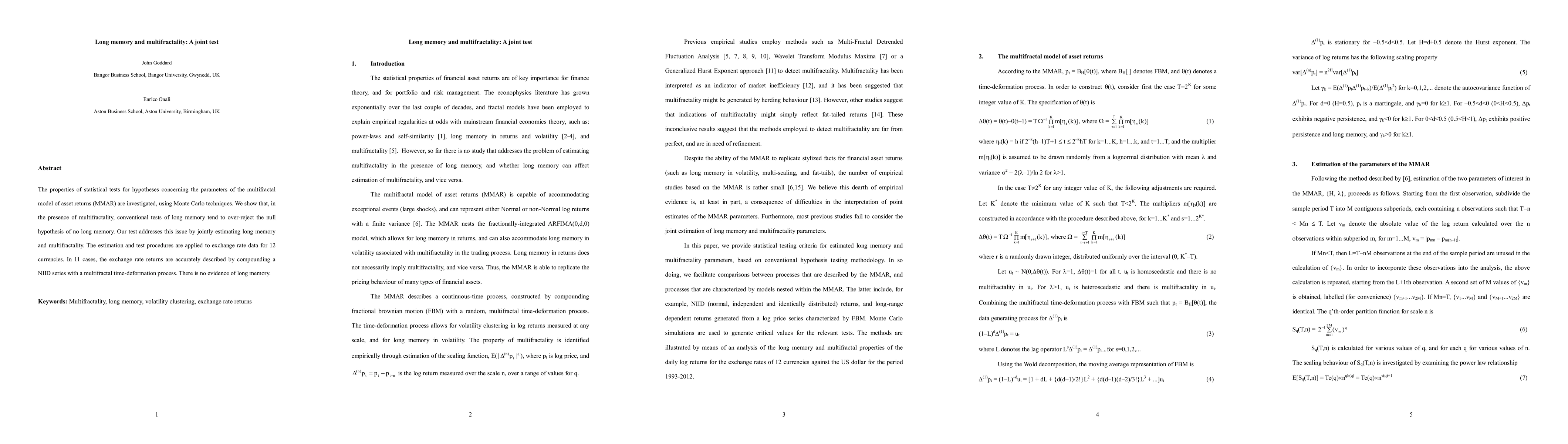 Research tests for long memory in asset returns, finding that traditional tests over-reject when multifractality is present; a new joint test method improves accuracy, revealing no evidence of long memory in 11 out of 12 currencies.