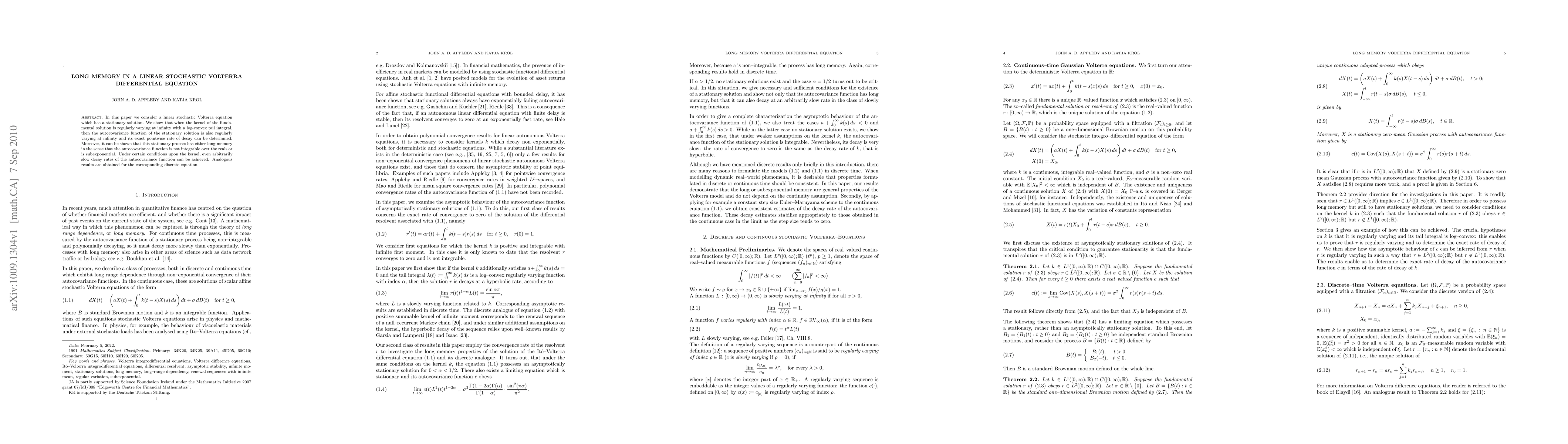 In this paper we consider a linear stochastic Volterra equation which has a stationary solution. We show that when the kernel of the fundamental solution is regularly varying at infinity with a log-convex tail integral, then the autocovariance function of the stationary solution is also regularly varying at infinity and its exact pointwise rate of decay can be determined. Moreover, it can be shown that this stationary process has either long memory in the sense that the autocovariance function is not integrable over the reals or is subexponential. Under certain conditions upon the kernel, even arbitrarily slow decay rates of the autocovariance function can be achieved. Analogous results are obtained for the corresponding discrete equation.