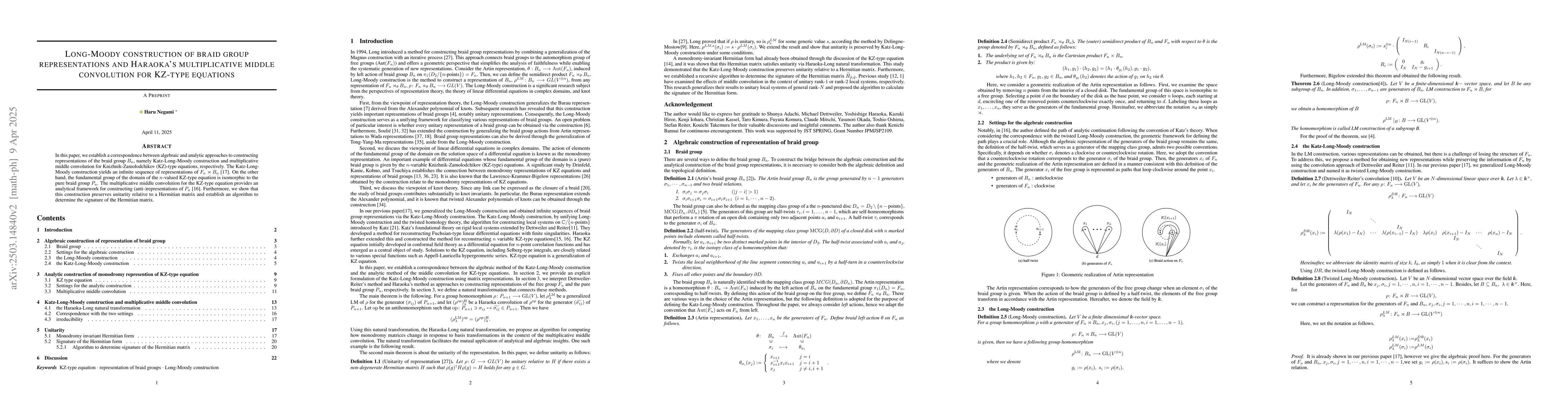 The paper introduces a method to determine the signature of the Hermitian matrix $\widetilde{H}_{\widetilde{p}, \widetilde{q}}$ and proves an isomorphism between the twisted Long-Moody construction and Haraoka's convolution.