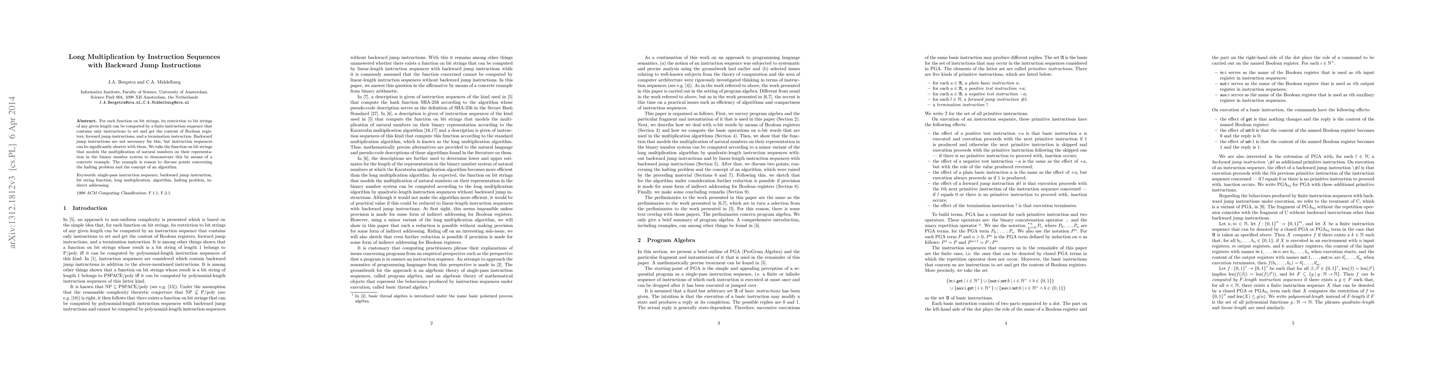 For each function on bit strings, its restriction to bit strings of any given length can be computed by a finite instruction sequence that contains only instructions to set and get the content of Boolean registers, forward jump instructions, and a termination instruction. Backward jump instructions are not necessary for this, but instruction sequences can be significantly shorter with them. We take the function on bit strings that models the multiplication of natural numbers on their representation in the binary number system to demonstrate this by means of a concrete example. The example is reason to discuss points concerning the halting problem and the concept of an algorithm.