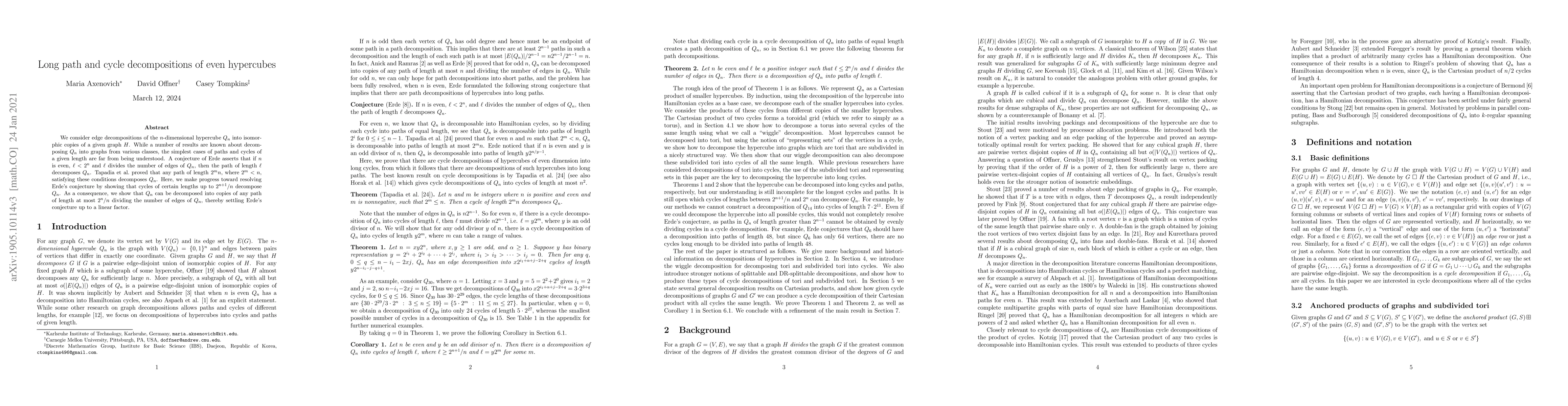 This paper advances the understanding of decomposing even-dimensional hypercubes into isomorphic copies of paths and cycles, proving that cycles of length up to $2^{n+1}/n$ decompose $Q_n$ and resolving Erde's conjecture for paths of length up to $2^{n}/n$.