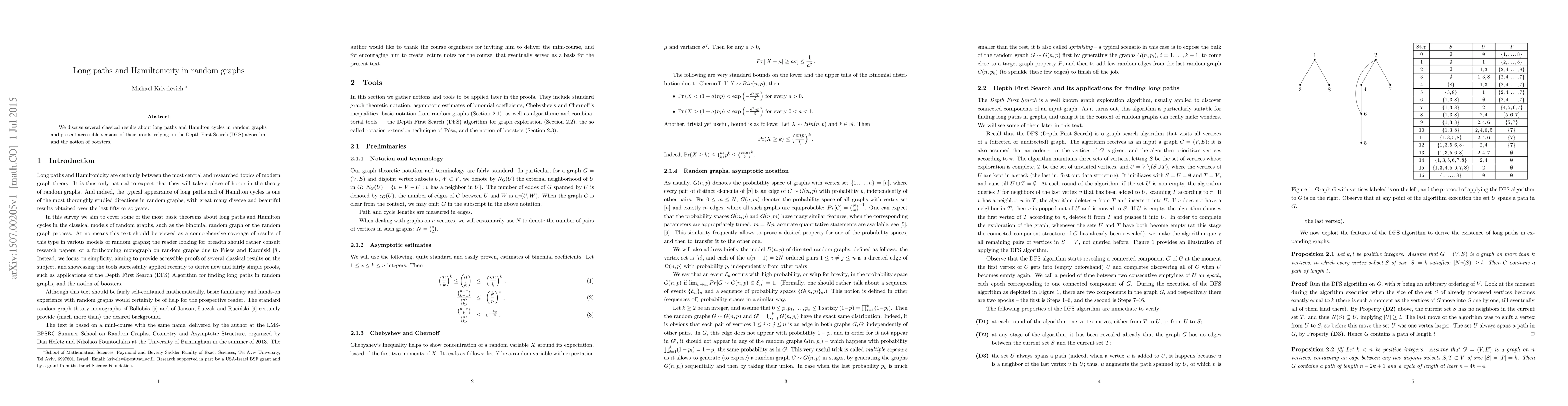 Summary: This paper revisits classical results on long paths and Hamilton cycles in random graphs, providing accessible proofs using Depth First Search (DFS) and the concept of boosters to elucidate these complex topics.