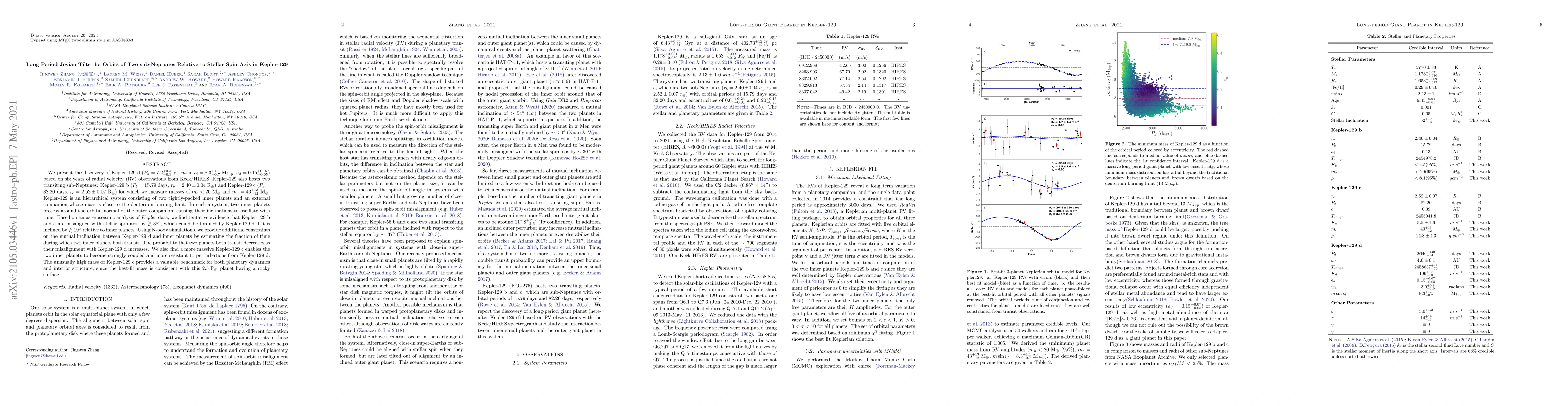 We present the discovery of Kepler-129 d ($P_{d}=7.2^{+0.4}_{-0.3}$ yr, $m\sin i_{d}=8.3^{+1.1}_{-0.7}\ \rm M_{Jup}$, $ e_{d}=0.15^{+0.07}_{-0.05} $) based on six years of radial velocity (RV) observations from Keck/HIRES. Kepler-129 also hosts two transiting sub-Neptunes: Kepler-129 b ($P_{b}=15.79$ days, $r_{b}=2.40\pm{0.04}\ \rm{R_{\oplus}}$) and Kepler-129 c ($P_{c}=82.20$ days, $r_{c}=2.52\pm{0.07}\ \rm{R_{\oplus}}$) for which we measure masses of $m_{b}<20\ \rm{M_{\oplus}}$ and $m_{c}=43^{+13}_{-12}\ \rm{M_{\oplus}}$. Kepler-129 is an hierarchical system consisting of two tightly-packed inner planets and an external companion whose mass is close to the deuterium burning limit. In such a system, two inner planets precess around the orbital normal of the outer companion, causing their inclinations to oscillate with time. Based on an asteroseismic analysis of Kepler data, we find tentative evidence that Kepler-129 b and c are misaligned with stellar spin axis by $\gtrsim 38$ deg, which could be torqued by Kepler-129 d if it is inclined by $\gtrsim 19$ deg relative to inner planets. Using N-body simulations, we provide additional constraints on the mutual inclination between Kepler-129 d and inner planets by estimating the fraction of time during which two inner planets both transit. The probability that two planets both transit decreases as their misalignment with Kepler-129 d increases. We also find a more massive Kepler-129 c enables the two inner planets to become strongly coupled and more resistant to perturbations from Kepler-129 d. The unusually high mass of Kepler-129 c provides a valuable benchmark for both planetary dynamics and interior structure, since the best-fit mass is consistent with this $\rm{2.5\ R_{\oplus}}$ planet having a rocky surface.