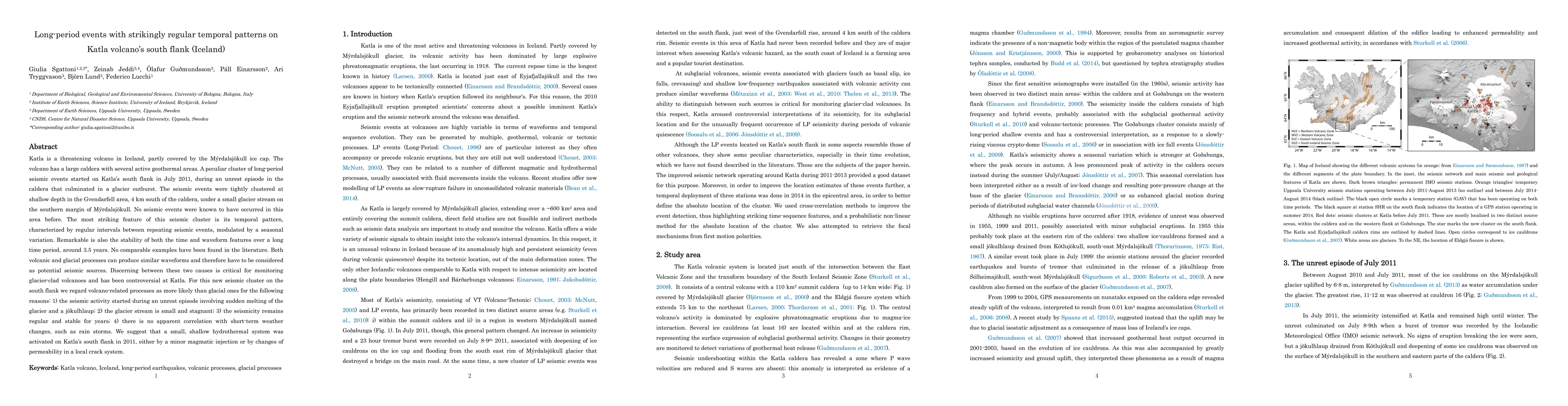 Researchers at Katla volcano in Iceland discovered a unique cluster of long-period seismic events with strikingly regular temporal patterns on the south flank of the volcano, which they believe is more likely caused by volcanic processes than glacial ones.