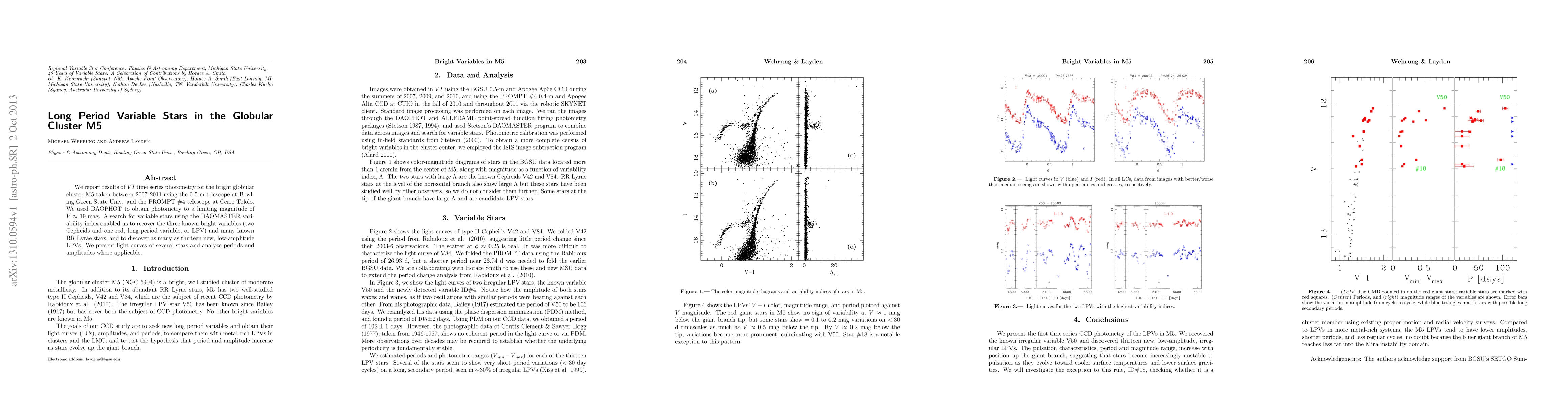 We report results of VI time series photometry for the bright globular cluster M5 taken between 2007-2011 using the 0.5-m telescope at Bowling Green State Univ. and the PROMPT #4 telescope at Cerro Tololo. We used DAOPHOT to obtain photometry to a limiting magnitude of V~19 mag. A search for variable stars using the DAOMASTER variability index enabled us to recover the three known bright variables (two Cepheids and one red, long period variable, or LPV) and many known RR Lyrae stars, and to discover as many as thirteen new, low-amplitude LPVs. We present light curves of several stars and analyze periods and amplitudes where applicable.