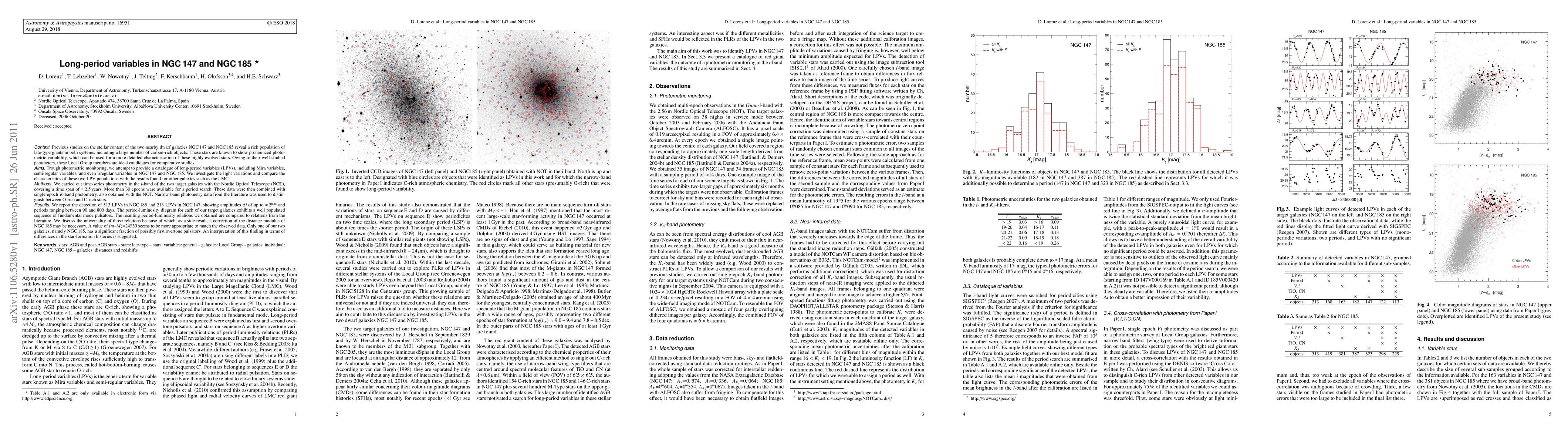 This study identifies 513 long-period variables in NGC185 and 213 in NGC147, revealing a well-populated period-luminosity sequence for each galaxy. The findings suggest possible differences in star-formation histories between the two galaxies.