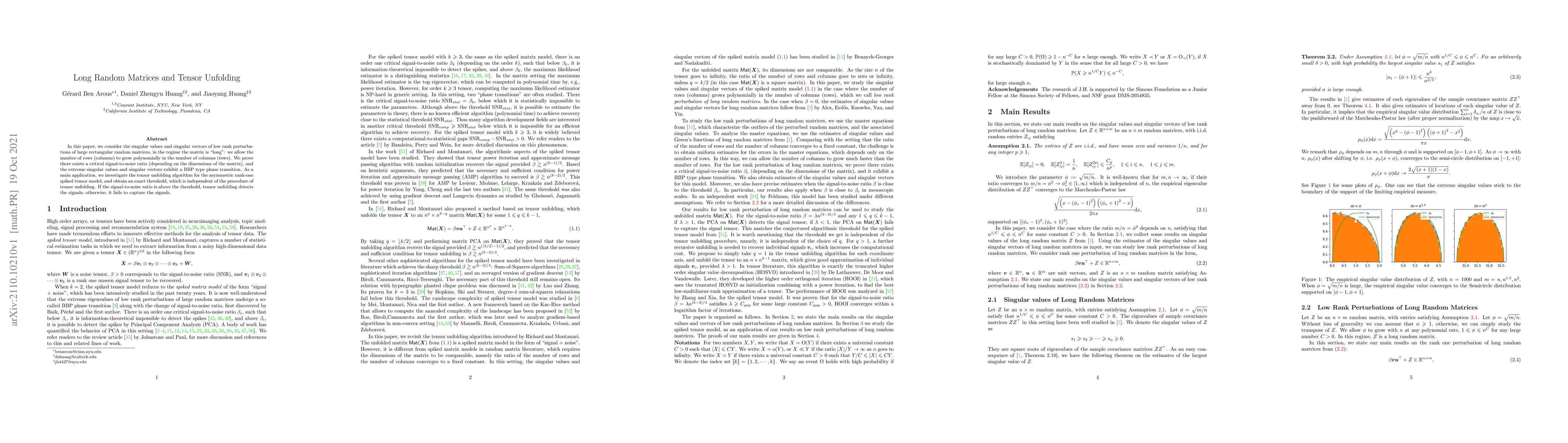 This paper explores singular values and vectors of large rectangular random matrices with varying row and column counts. It establishes a critical signal-to-noise ratio causing a phase transition in extreme singular values and vectors, termed BBP type. The research also applies these findings to the tensor unfolding algorithm for asymmetric rank-one spiked tensors, determining an exact signal detection threshold independent of the unfolding procedure.
