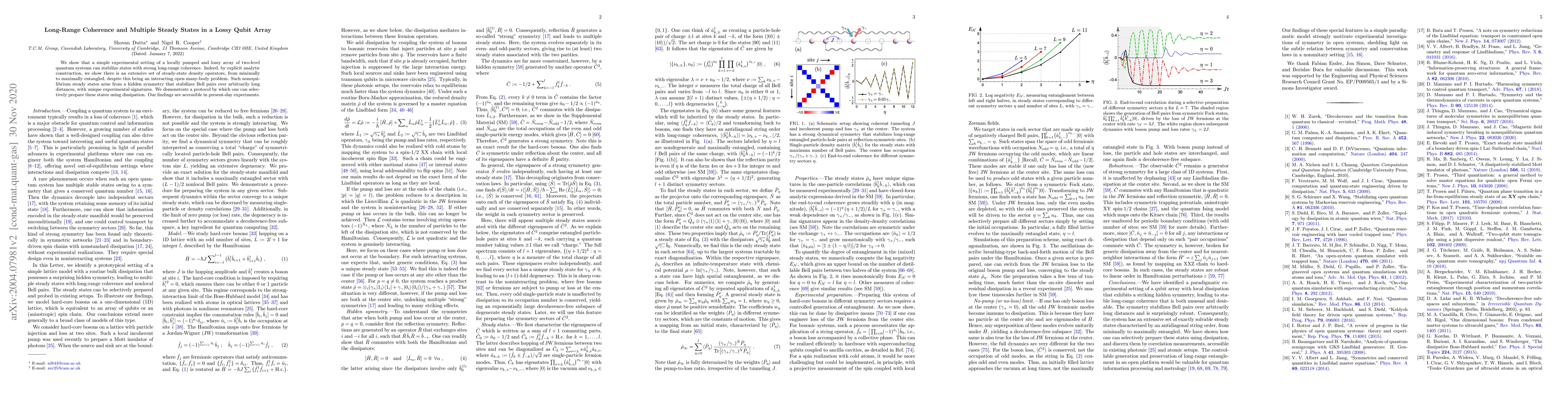 A study shows that even in a lossy array of quantum systems, states with long-range coherence can stabilize due to a hidden symmetry, allowing for selective preparation of entangled states through dissipation.