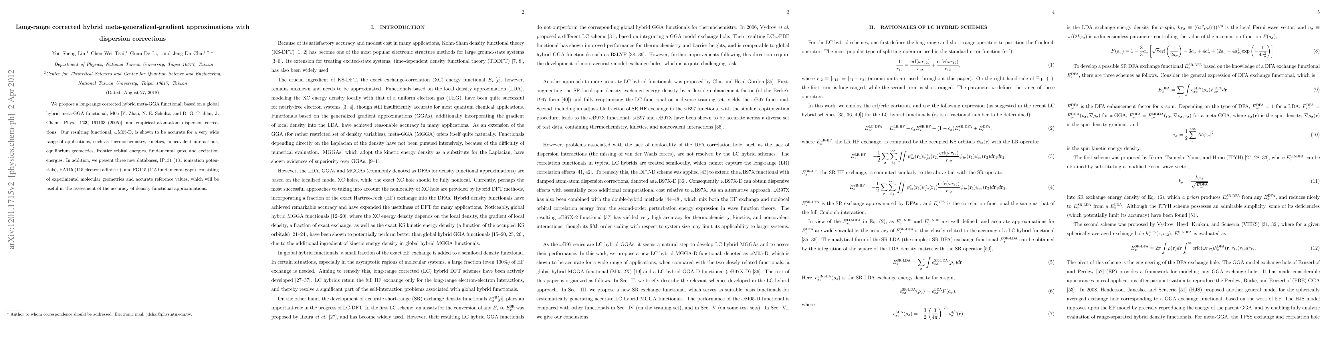 This paper introduces a long-range corrected hybrid meta-GGA functional, omegaM05-D, combining M05 with dispersion corrections, demonstrating its accuracy across various applications. It also provides three new databases for evaluating density functional approximations.