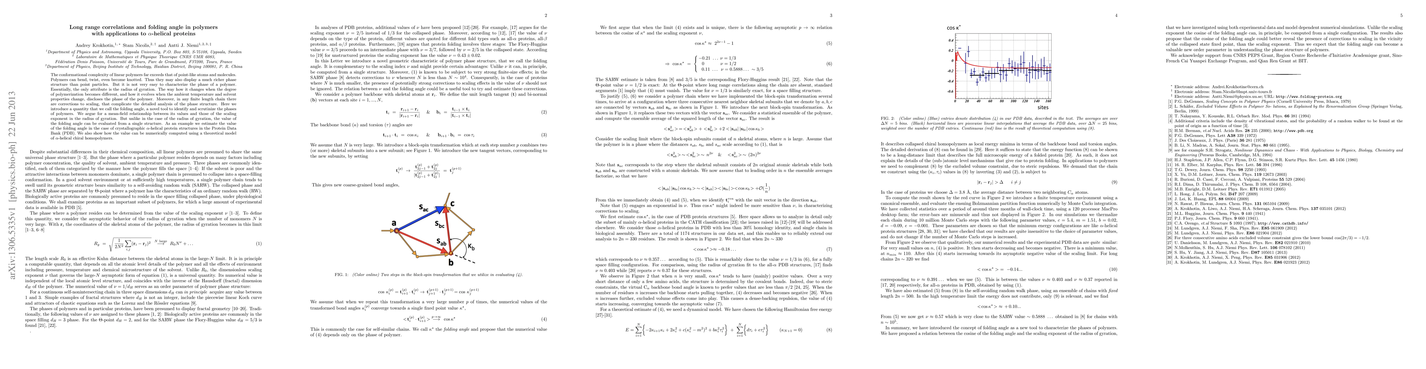The conformational complexity of linear polymers far exceeds that of point-like atoms and molecules. Polymers can bend, twist, even become knotted. Thus they may also display a much richer phase structure than point particles. But it is not very easy to characterize the phase of a polymer. Essentially, the only attribute is the radius of gyration. The way how it changes when the degree of polymerization becomes different, and how it evolves when the ambient temperature and solvent properties change, discloses the phase of the polymer. Moreover, in any finite length chain there are corrections to scaling, that complicate the detailed analysis of the phase structure. Here we introduce a quantity that we call the folding angle, a novel tool to identify and scrutinize the phases of polymers. We argue for a mean-field relationship between its values and those of the scaling exponent in the radius of gyration. But unlike in the case of the radius of gyration, the value of the folding angle can be evaluated from a single structure. As an example we estimate the value of the folding angle in the case of crystallographic {\alpha}-helical protein structures in the Protein Data Bank (PDB). We also show how the value can be numerically computed using a theoretical model of {\alpha}-helical chiral homopolymers.