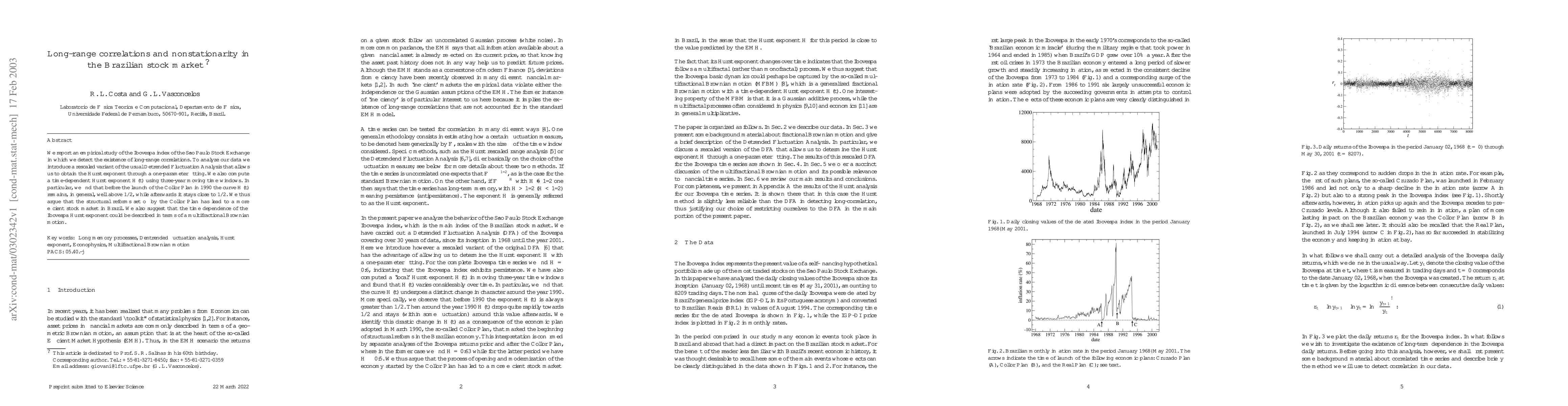 We report an empirical study of the Ibovespa index of the Sao Paulo Stock Exchange in which we detect the existence of long-range correlations. To analyze our data we introduce a rescaled variant of the usual Detrended Fluctuation Analysis that allows us to obtain the Hurst exponent through a one-parameter fitting. We also compute a time-dependent Hurst exponent H(t) using three-year moving time windows. In particular, we find that before the launch of the Collor Plan in 1990 the curve H(t) remains, in general, well above 1/2, while afterwards it stays close to 1/2. We thus argue that the structural reforms set off by the Collor Plan has lead to a more efficient stock market in Brazil. We also suggest that the time dependence of the Ibovespa Hurst exponent could be described in terms of a multifractional Brownian motion.