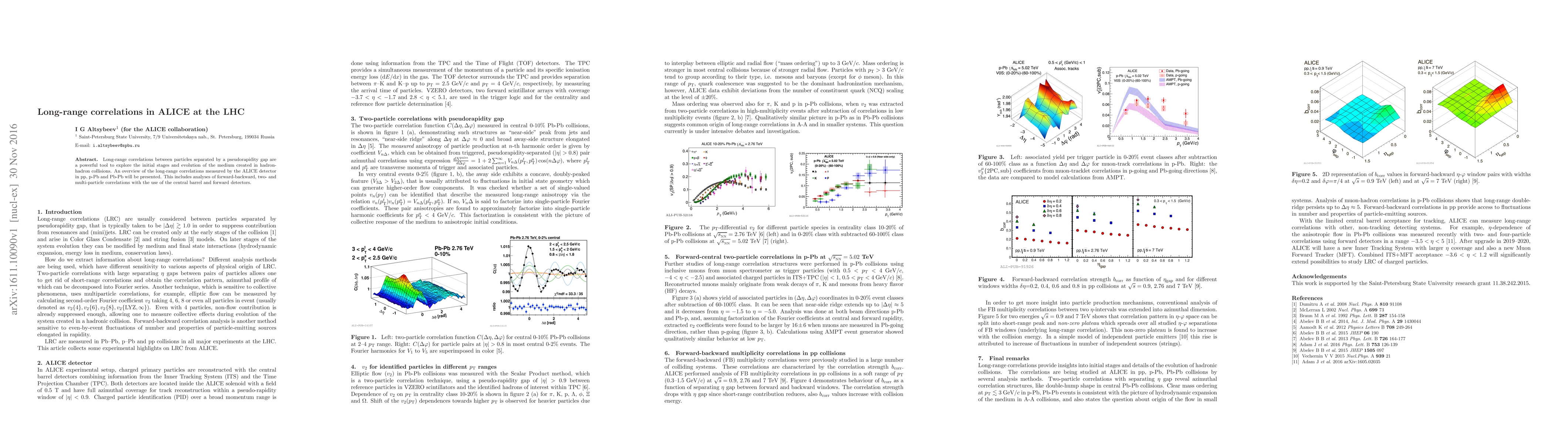 This paper provides an overview of long-range particle correlations measured by the ALICE detector in various collision types at the LHC, highlighting insights into the initial stages and evolution of the medium formed in these interactions. The analysis includes forward-backward, two- and multi-particle correlations using both central and forward detectors.