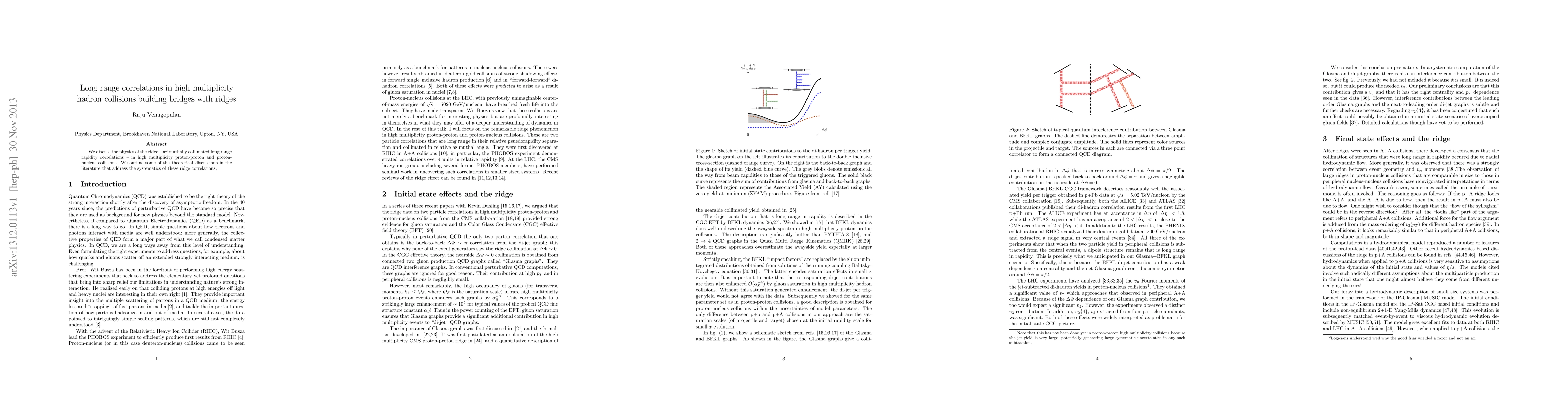 We discuss the physics of the ridge -- azimuthally collimated long range rapidity correlations -- in high multiplicity proton-proton and proton-nucleus collisions. We outline some of the theoretical discussions in the literature that address the systematics of these ridge correlations.