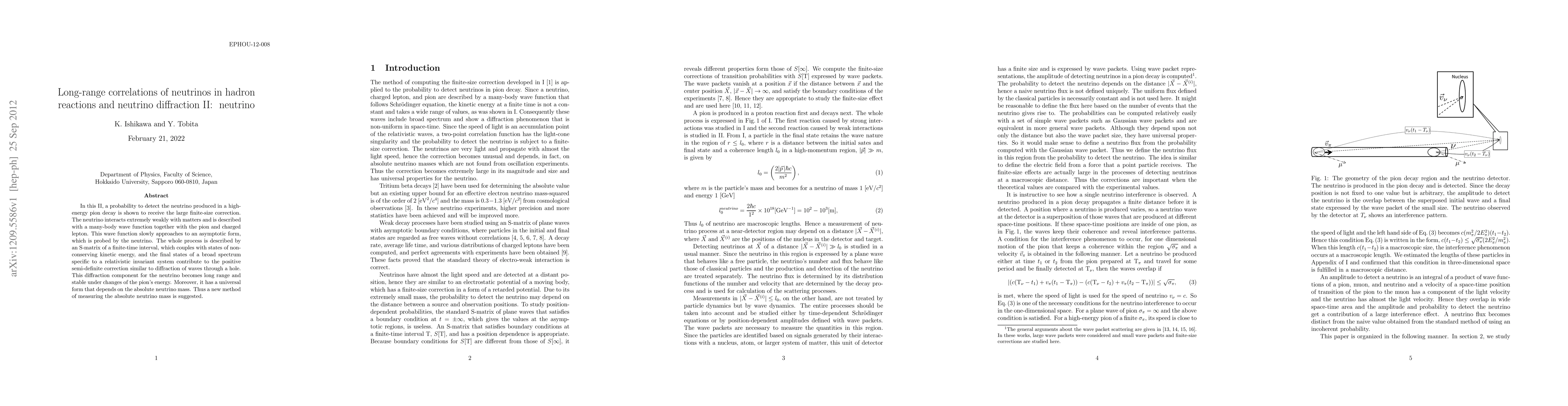 In this II, a probability to detect the neutrino produced in a high-energy pion decay is shown to receive the large finite-size correction. The neutrino interacts extremely weakly with matters and is described with a many-body wave function together with the pion and charged lepton. This wave function slowly approaches to an asymptotic form, which is probed by the neutrino. The whole process is described by an S-matrix of a finite-time interval, which couples with states of non-conserving kinetic energy, and the final states of a broad spectrum specific to a relativistic invariant system contribute to the positive semi-definite correction similar to diffraction of waves through a hole. This diffraction component for the neutrino becomes long range and stable under changes of the pion's energy. Moreover, it has a universal form that depends on the absolute neutrino mass. Thus a new method of measuring the absolute neutrino mass is suggested.