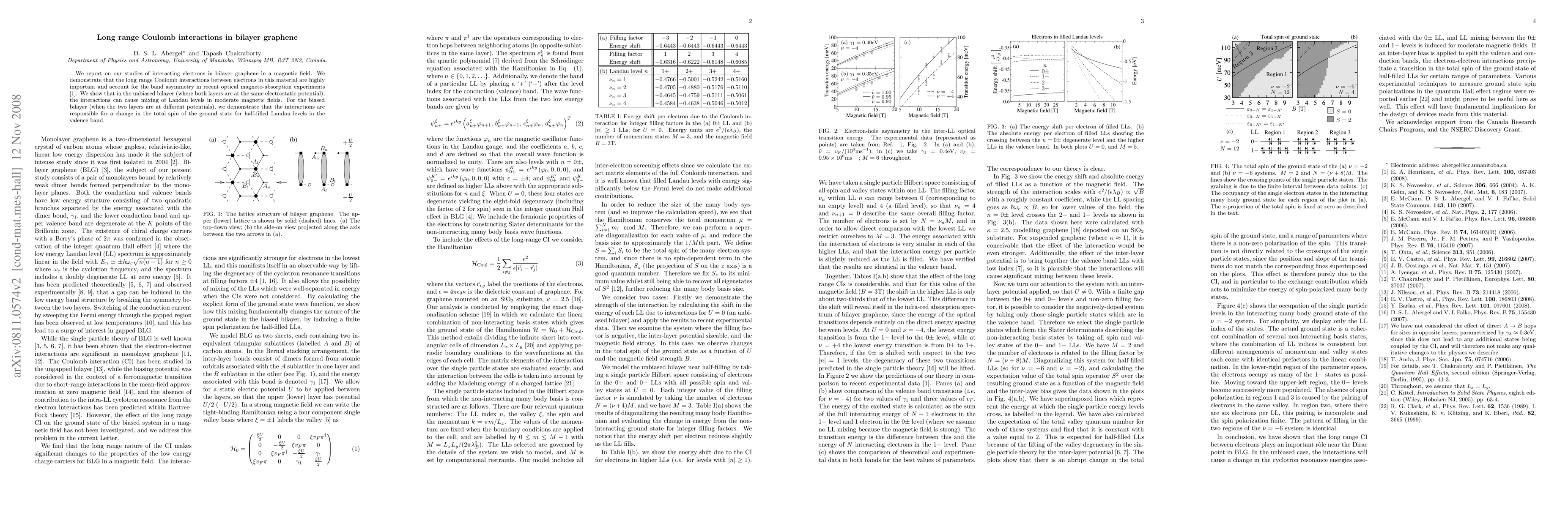 This study investigates long-range Coulomb interactions in bilayer graphene under a magnetic field, revealing their significance in band asymmetry and optical magneto-absorption experiments. The research shows that these interactions can mix Landau levels in unbiased bilayers and alter the ground state spin in biased bilayers.