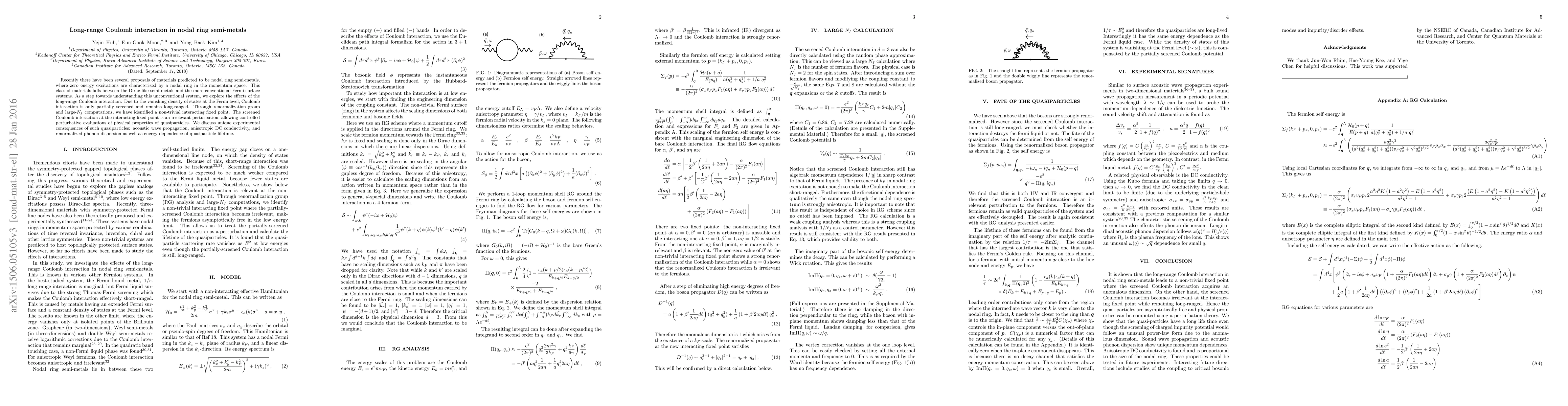 Recently there have been several proposals of materials predicted to be nodal-ring semimetals, where zero energy excitations are characterized by a nodal ring in the momentum space. This class of materials falls between the Dirac-like semimetals and the more conventional Fermi-surface systems. As a step towards understanding this unconventional system, we explore the effects of the long-range Coulomb interaction. Due to the vanishing density of states at the Fermi level, Coulomb interaction is only partially screened and remains long-ranged. Through renormalization group and large-$N_f$ computations, we have identified a nontrivial interacting fixed point. The screened Coulomb interaction at the interacting fixed point is an irrelevant perturbation, allowing controlled perturbative evaluations of physical properties of quasiparticles. We discuss unique experimental consequences of such quasiparticles: acoustic wave propagation, anisotropic dc conductivity, and renormalized phonon dispersion as well as energy dependence of quasiparticle lifetime.