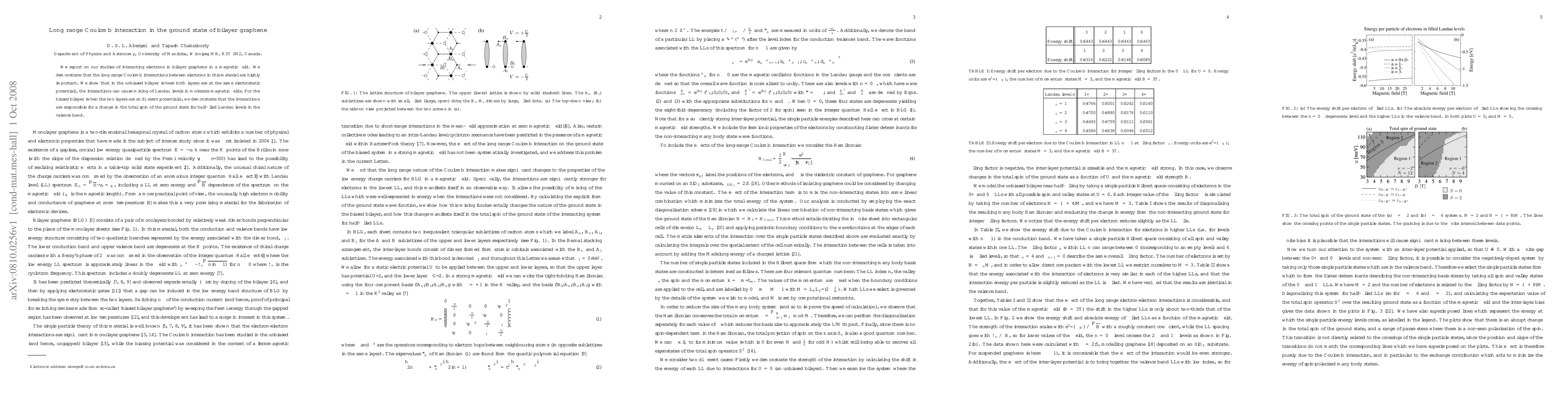 This study investigates long-range Coulomb interactions in bilayer graphene, showing that they significantly influence electron behavior. In unbiased bilayers, these interactions mix Landau levels in moderate magnetic fields, while in biased bilayers, they alter the total spin of the ground state for half-filled Landau levels in the valence band.