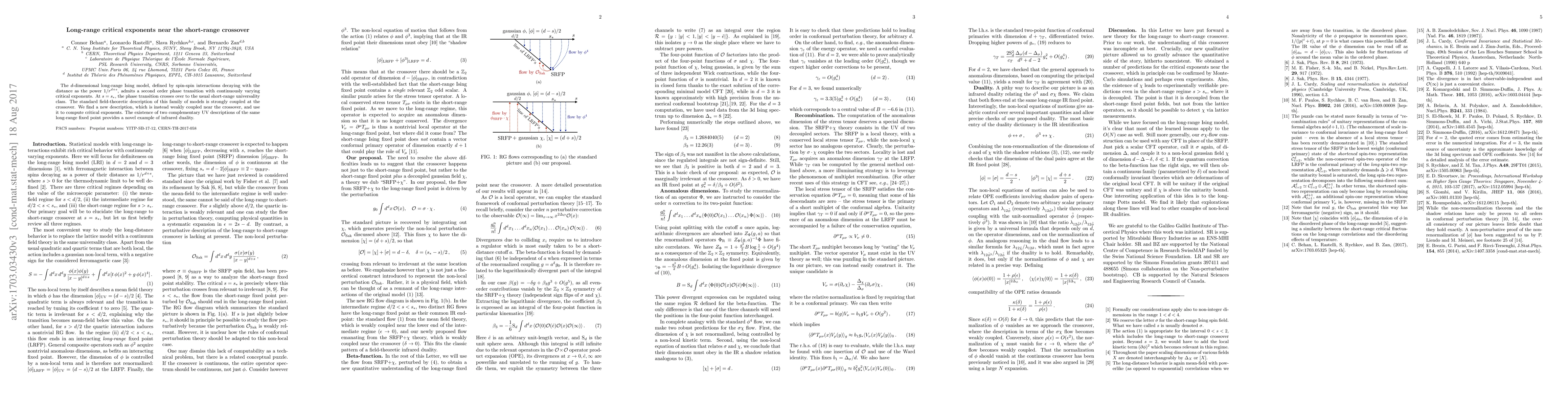 This paper studies the critical behavior of long-range Ising models with varying interaction decay, revealing a phase transition crossover to short-range universality at a specific parameter. It introduces a weakly coupled theoretical framework near the crossover, contrasting with the standard strongly coupled description, and demonstrates infrared duality through two complementary UV descriptions.