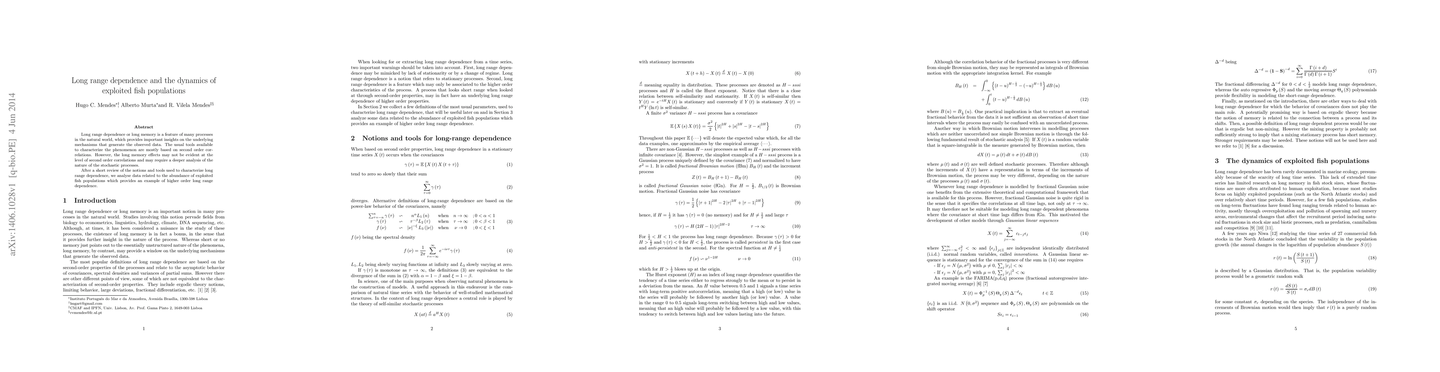 This paper explores long range dependence in exploited fish populations, demonstrating that traditional second-order correlation tools may miss deeper stochastic processes. It employs advanced methods to reveal long memory effects in fish population data, highlighting the importance of such analyses for understanding ecological dynamics.