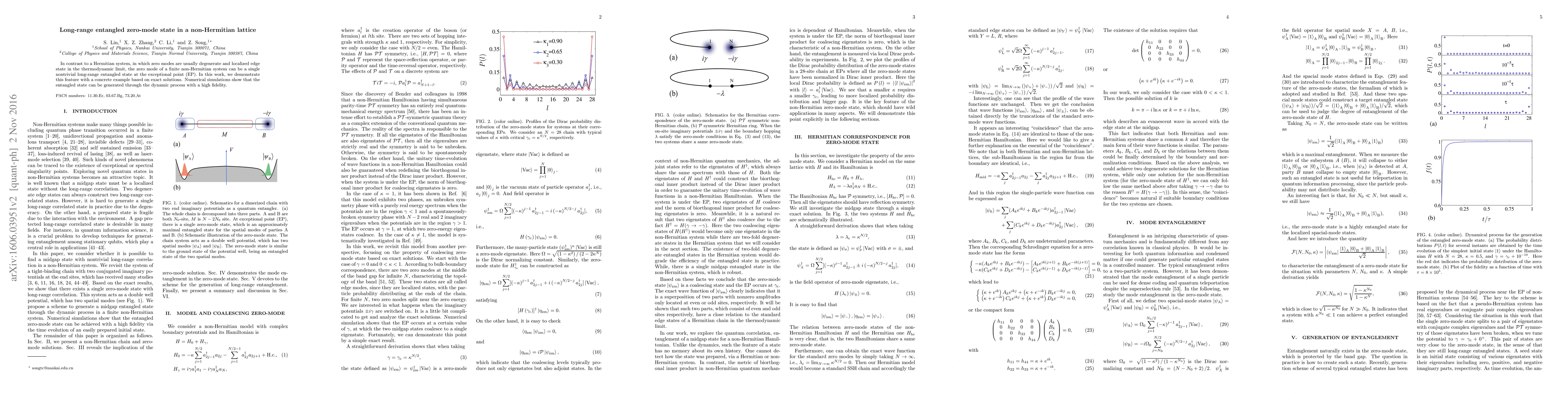 This paper explores the unique zero-mode state in non-Hermitian lattices, demonstrating that unlike in Hermitian systems, a finite non-Hermitian system can exhibit a single, nontrivial long-range entangled state at the exceptional point. Numerical simulations confirm the high fidelity generation of this entangled state through dynamic processes.