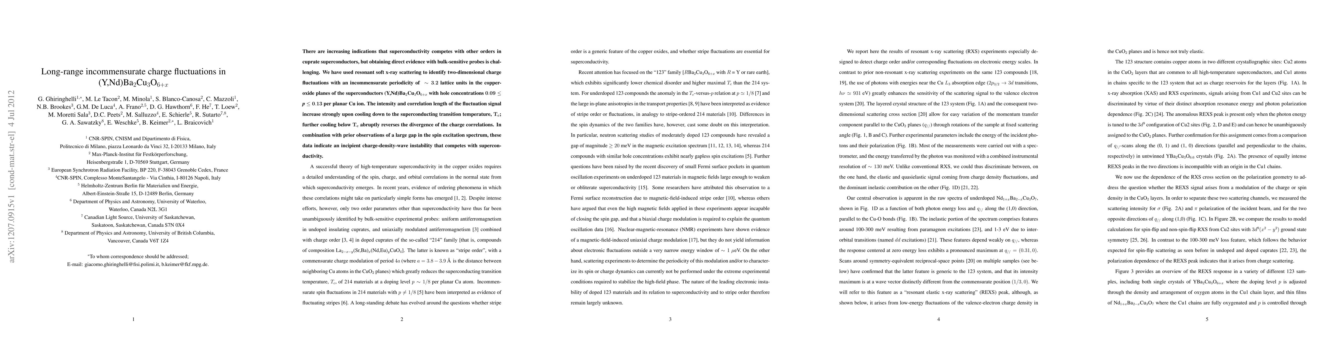 There are increasing indications that superconductivity competes with other orders in cuprate superconductors, but obtaining direct evidence with bulk-sensitive probes is challenging. We have used resonant soft x-ray scattering to identify two-dimensional charge fluctuations with an incommensurate periodicity of $\bf \sim 3.2$ lattice units in the copper-oxide planes of the superconductors (Y,Nd)Ba$_2$Cu$_3$O$_{6+x}$ with hole concentrations $0.09 \leq p \leq 0.13$ per planar Cu ion. The intensity and correlation length of the fluctuation signal increase strongly upon cooling down to the superconducting transition temperature, $T_c$; further cooling below $T_c$ abruptly reverses the divergence of the charge correlations. In combination with prior observations of a large gap in the spin excitation spectrum, these data indicate an incipient charge-density-wave instability that competes with superconductivity.
