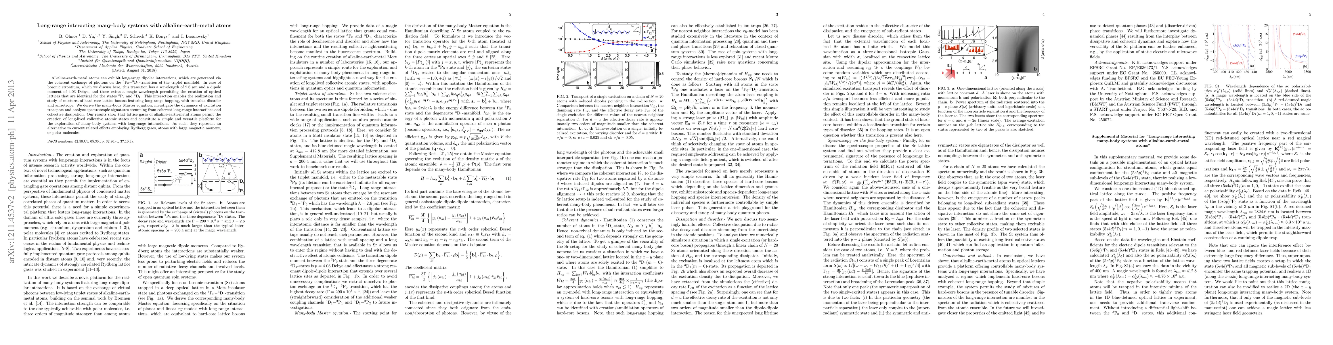 This paper explores the long-range dipolar interactions in alkaline-earth-metal atoms using bosonic strontium, enabling the study of mixtures of hard-core lattice bosons. The research derives a many-body Master equation to analyze dynamics and spectroscopic signatures, revealing a versatile platform for studying many-body systems with long-range interactions.