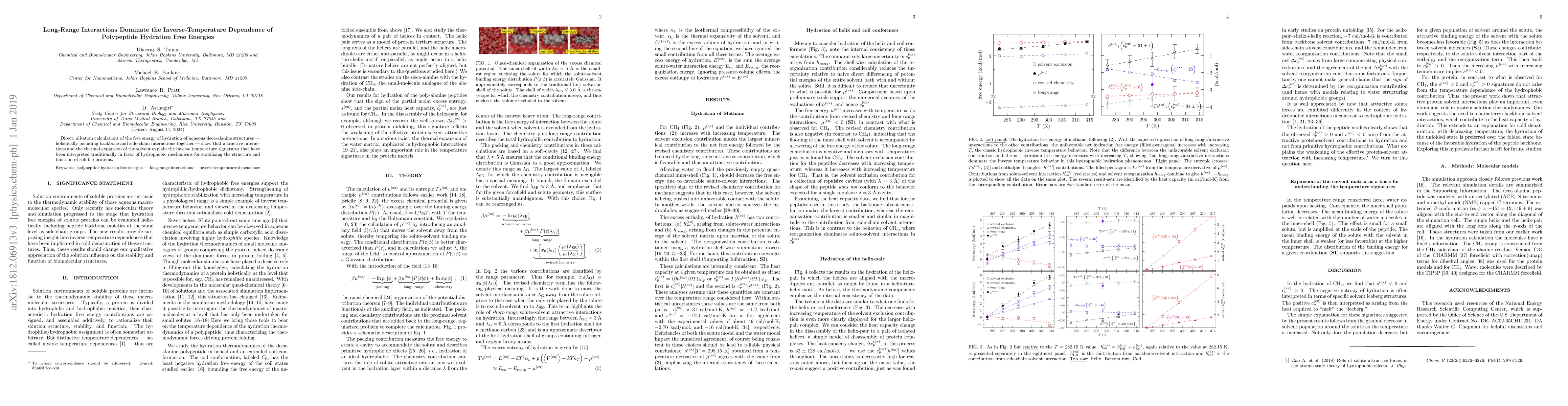 This study reveals that long-range interactions and solvent thermal expansion, rather than hydrophobic effects, primarily account for the inverse temperature dependence of polypeptide hydration free energies, challenging traditional views on protein stabilization.
