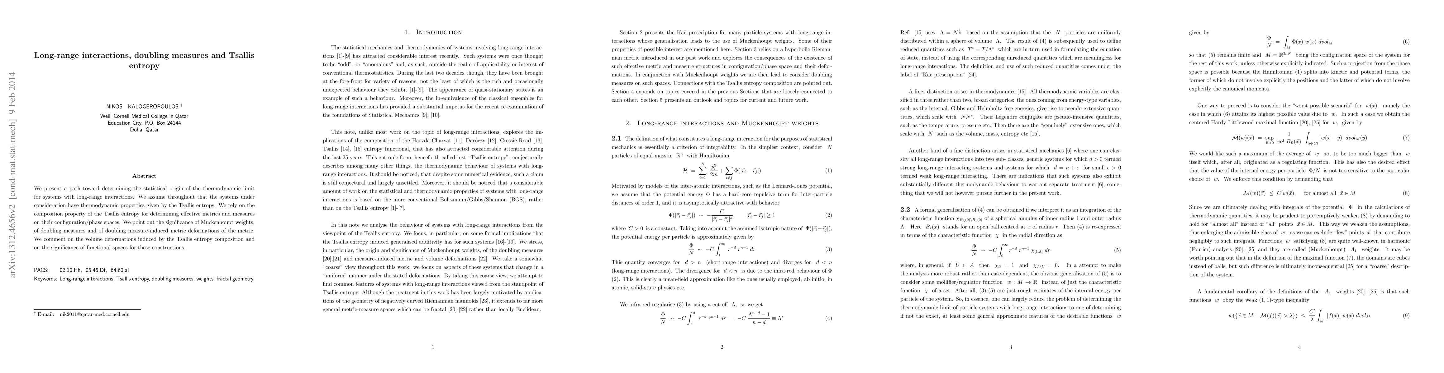 This paper explores the statistical basis for the thermodynamic limit in systems with long-range interactions, using Tsallis entropy. It leverages the composition property of Tsallis entropy to define effective metrics and measures on configuration spaces, highlighting the roles of Muckenhoupt weights, doubling measures, and metric deformations.