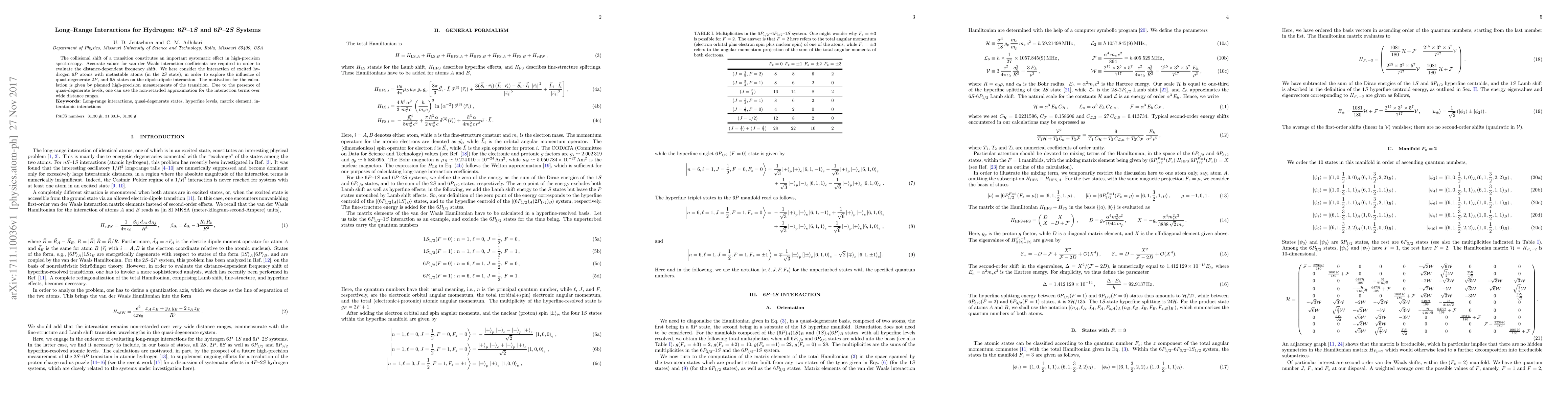 This paper investigates the van der Waals interaction coefficients for the hydrogen 6P-1S and 6P-2S transitions, focusing on the influence of quasi-degenerate states on dipole-dipole interactions. The study aims to provide accurate values for evaluating the distance-dependent frequency shift in high-precision spectroscopy.