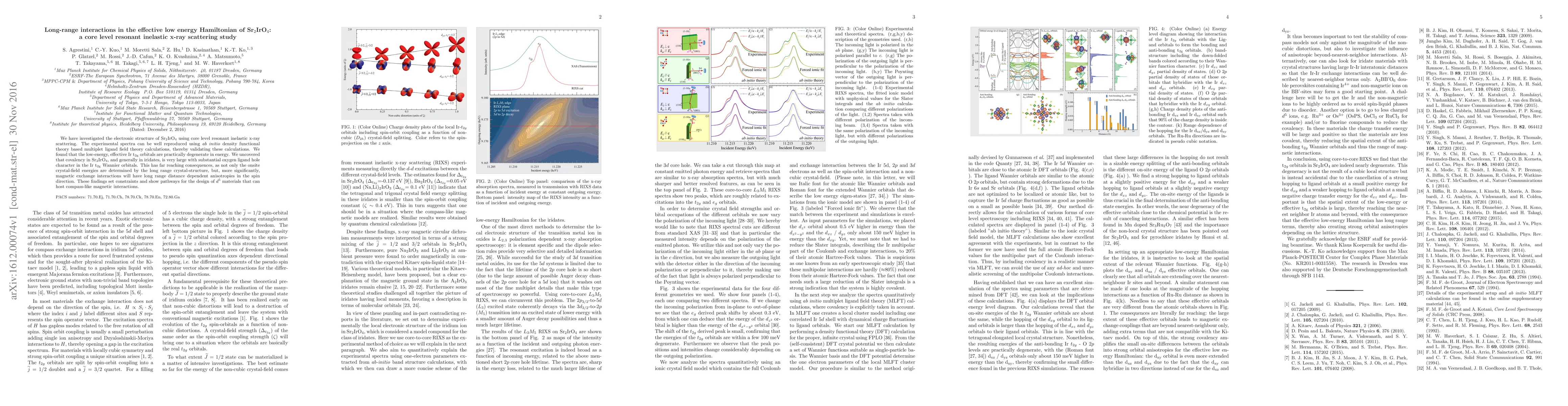 We have investigated the electronic structure of Sr2IrO4 using core level resonant inelastic x-ray scattering. The experimental spectra can be well reproduced using ab initio density functional theory based multiplet ligand field theory calculations, thereby validating these calculations. We found that the low-energy, effective Ir t2g orbitals are practically degenerate in energy. We uncovered that covalency in Sr2IrO4, and generally in iridates, is very large with substantial oxygen ligand hole character in the Ir t2g Wannier orbitals. This has far reaching consequences, as not only the onsite crystal-field energies are determined by the long range crystal-structure, but, more significantly, magnetic exchange interactions will have long range distance dependent anisotropies in the spin direction. These findings set constraints and show pathways for the design of d^5 materials that can host compass-like magnetic interactions.