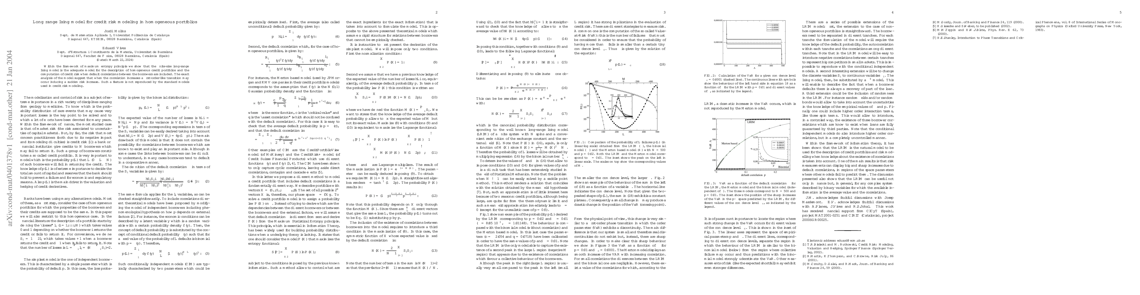 Within the framework of maximum entropy principle we show that the finite-size long-range Ising model is the adequate model for the description of homogeneous credit portfolios and the computation of credit risk when default correlations between the borrowers are included. The exact analysis of the model suggest that when the correlation increases a first-order-like transition may occur inducing a sudden risk increase. Such a feature is not reproduced by the standard models used in credit risk modeling.