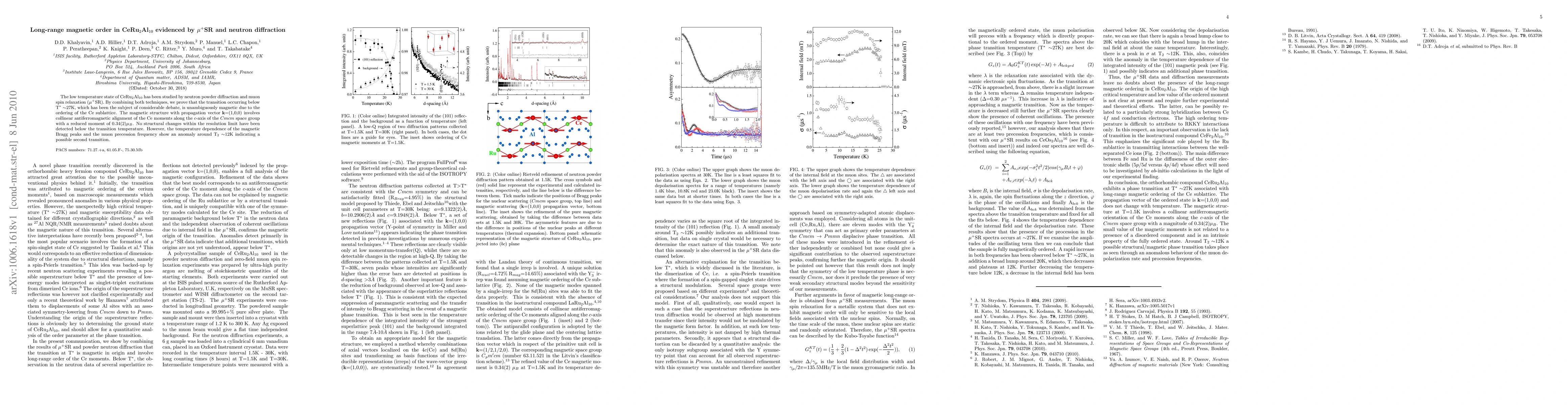 Researchers discover long-range magnetic order in CeRu2Al10 at 27K, with muSR and neutron diffraction techniques confirming antiferromagnetic alignment of Ce sublattice, and hinting at possible second transition around 12 K.