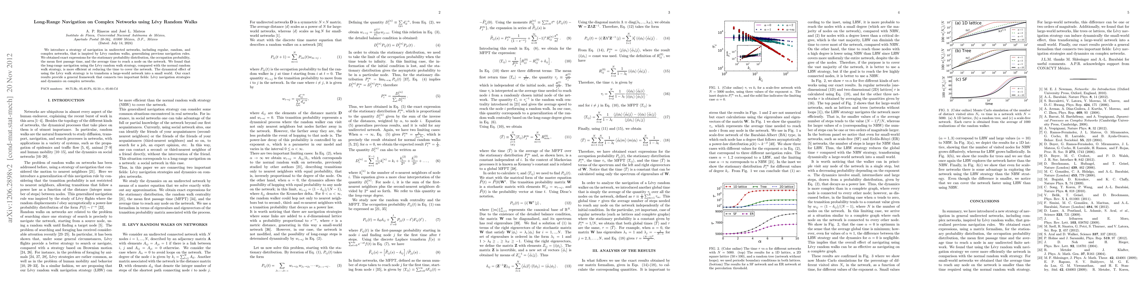 This paper proposes a navigation strategy on undirected networks using Lévy random walks, which is more efficient than normal random walks. The authors derive exact expressions for key metrics and demonstrate that Lévy walks transform large-world networks into small-world networks, providing a framework linking Lévy navigation and complex network dynamics.