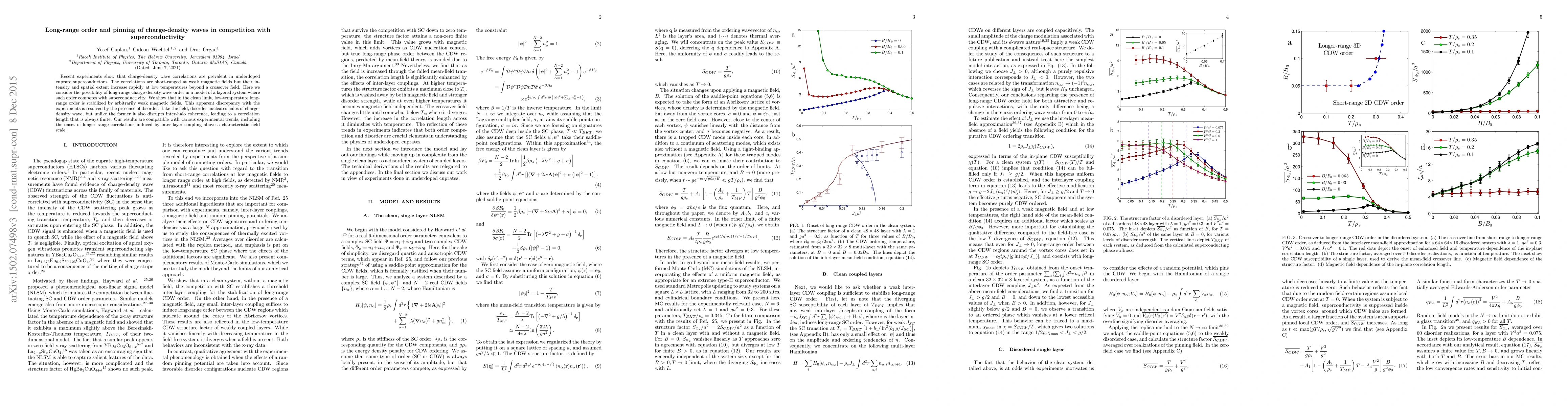 This paper explores the long-range order and pinning of charge-density waves (CDWs) in underdoped cuprate superconductors, finding that while CDW correlations grow with temperature, disorder prevents true long-range order, explaining experimental observations.