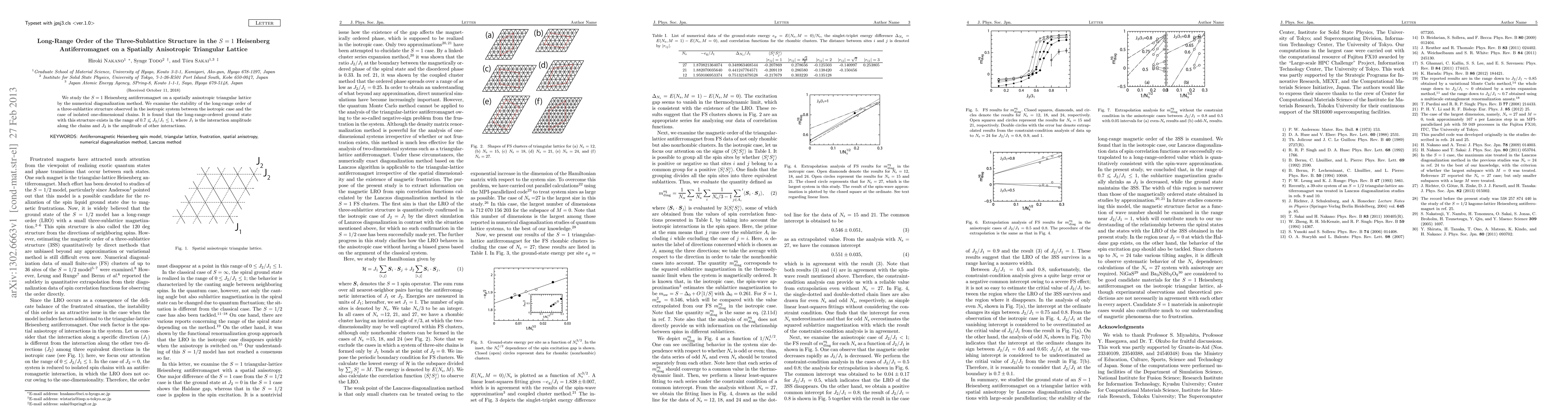 This paper investigates the stability of a three-sublattice structure in an S=1 Heisenberg antiferromagnet on a spatially anisotropic triangular lattice using numerical diagonalization. The study finds that a long-range ordered ground state with this structure persists in the interaction ratio range of 0.7 ≤ J_2/J_1 ≤ 1.