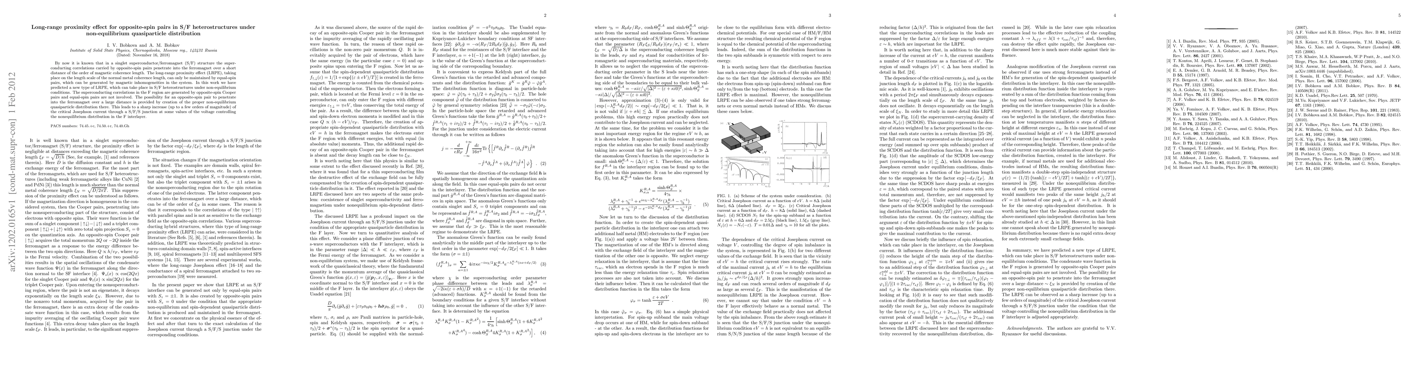 By now it is known that in a singlet superconductor/ferromagnet (S/F) structure the superconducting correlations carried by opposite-spin pairs penetrate into the ferromagnet over a short distance of the order of magnetic coherence length. The long-range proximity effect (LRPE), taking place on the length scale of the normal metal coherence length, can only be maintained by equal-spin pairs, which can be generated by magnetic inhomogeneities in the system. In this work we have predicted a new type of LRPE, which can take place in S/F heterostructures under non-equilibrium conditions. The superconducting correlations in the F region are generated by opposite-spin Cooper pairs and equal-spin pairs are not involved. The possibility for an opposite-spin pair to penetrate into the ferromagnet over a large distance is provided by creation of the proper non-equilibrium quasiparticle distribution there. This leads to a sharp increase (up to a few orders of magnitude) of the critical Josephson current through a S/F/S junction at some values of the voltage controlling the nonequilibrium distribution in the F interlayer.