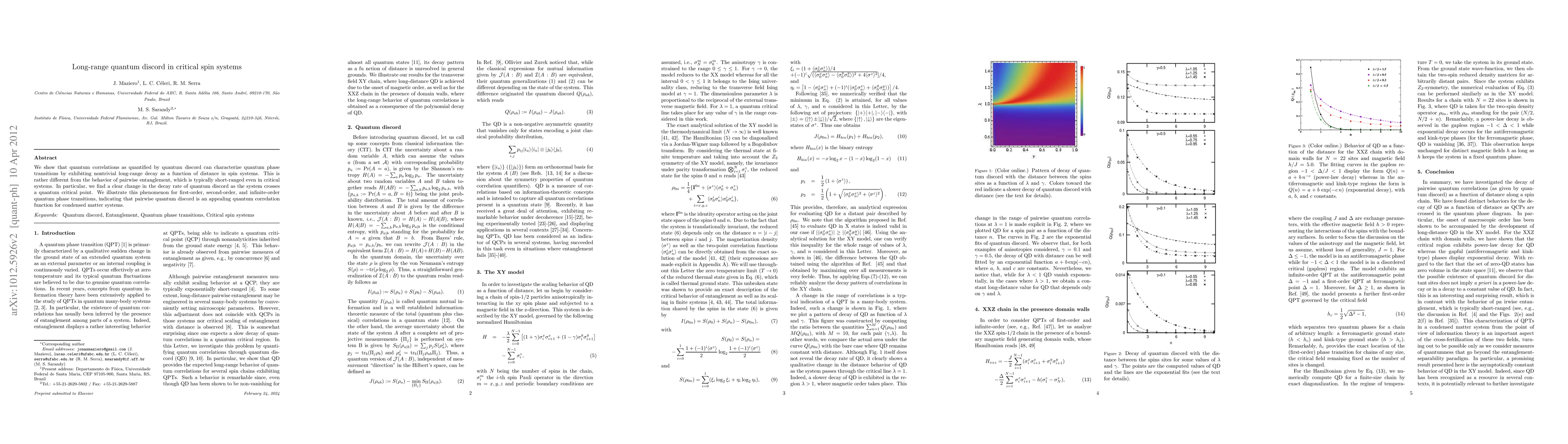 This study demonstrates that quantum discord, unlike short-ranged pairwise entanglement, exhibits nontrivial long-range decay in critical spin systems, effectively characterizing quantum phase transitions. The research highlights a distinct change in the decay rate of quantum discord at quantum critical points across different types of transitions.