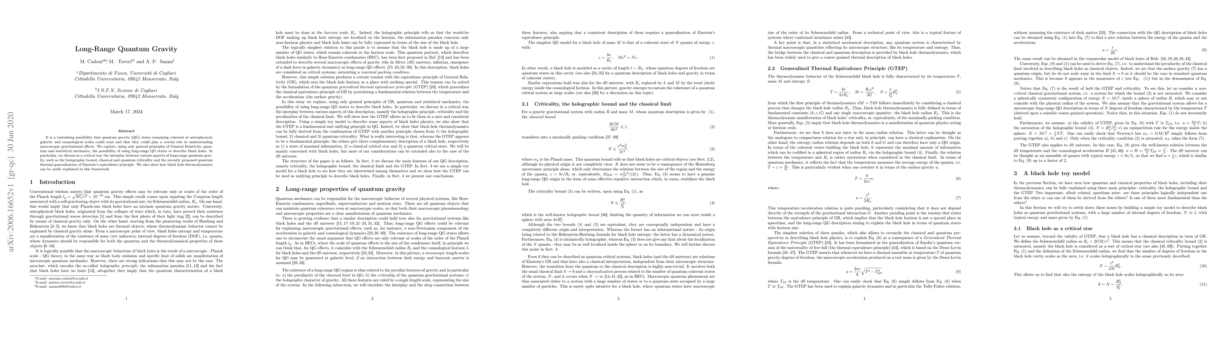 It is a tantalising possibility that quantum gravity (QG) states remaining coherent at astrophysical, galactic and cosmological scales could exist and that they could play a crucial role in understanding macroscopic gravitational effects. We explore, using only general principles of General Relativity, quantum and statistical mechanics, the possibility of using long-range QG states to describe black holes. In particular, we discuss in a critical way the interplay between various aspects of long-range quantum gravity, such as the holographic bound, classical and quantum criticality and the recently proposed quantum thermal generalisation of Einstein's equivalence principle. We also show how black hole thermodynamics can be easily explained in this framework.