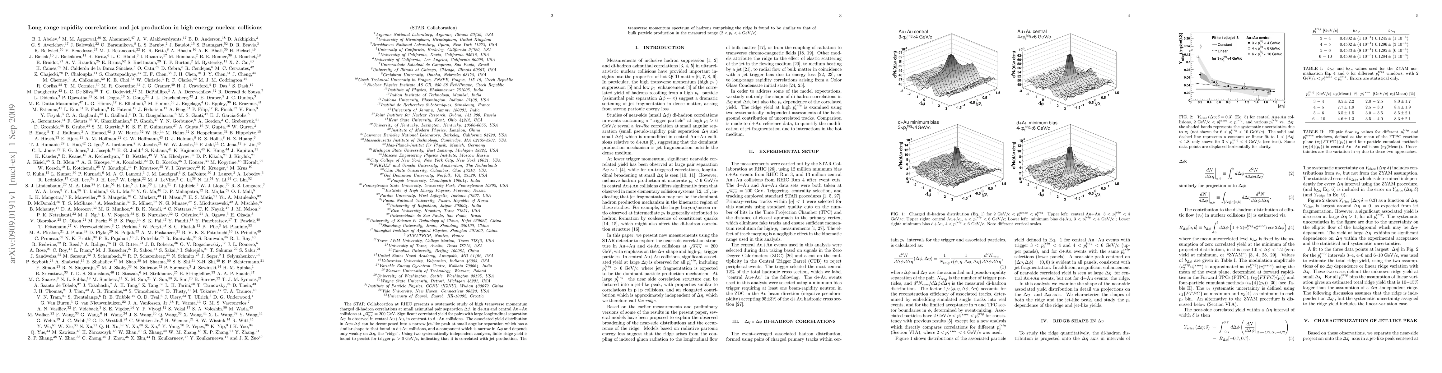 The STAR Collaboration reports significant long-range rapidity correlations in high-energy nuclear collisions, particularly in central Au+Au collisions, characterized by a "ridge" component distinct from a jet-like peak. This ridge persists at high transverse momentum, suggesting a connection to jet production.